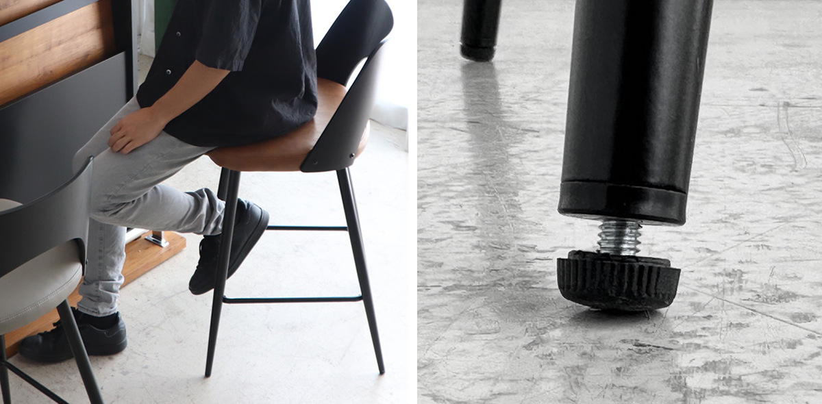 高さ調節できるアジャスター付きです。ガタつきを軽減できます。