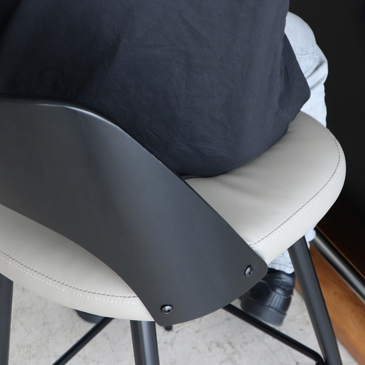 落ち着いた色合いとPUレザー生地を使用した座面は、上品な雰囲気を醸し出します。美しいツヤと本革のような上質な生地で、もちもちとした肌触りが心地良いです。
