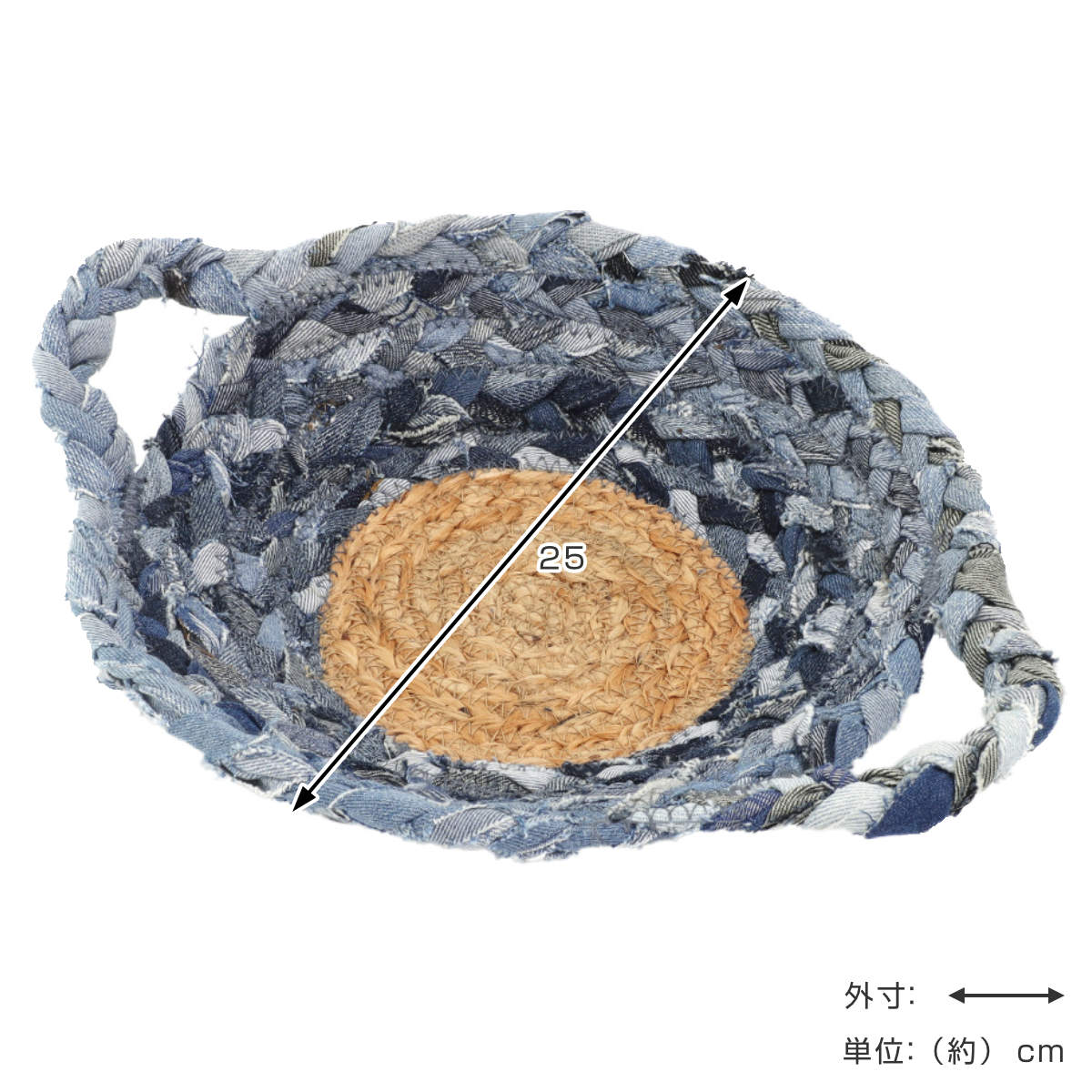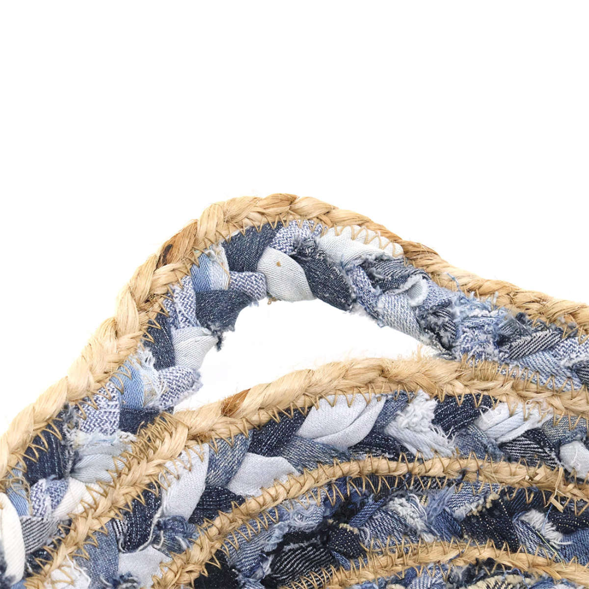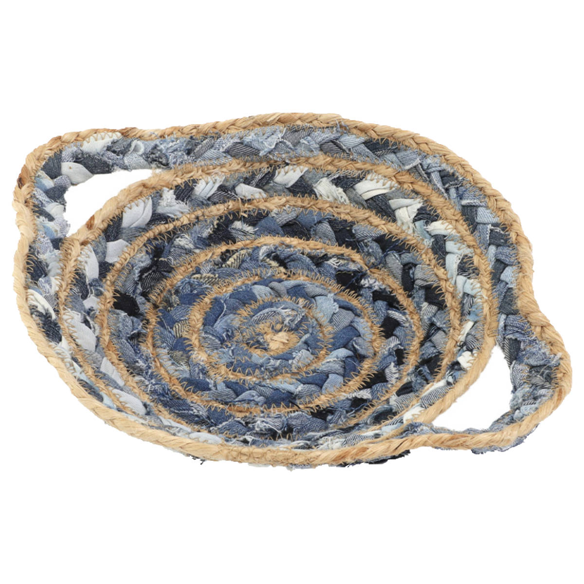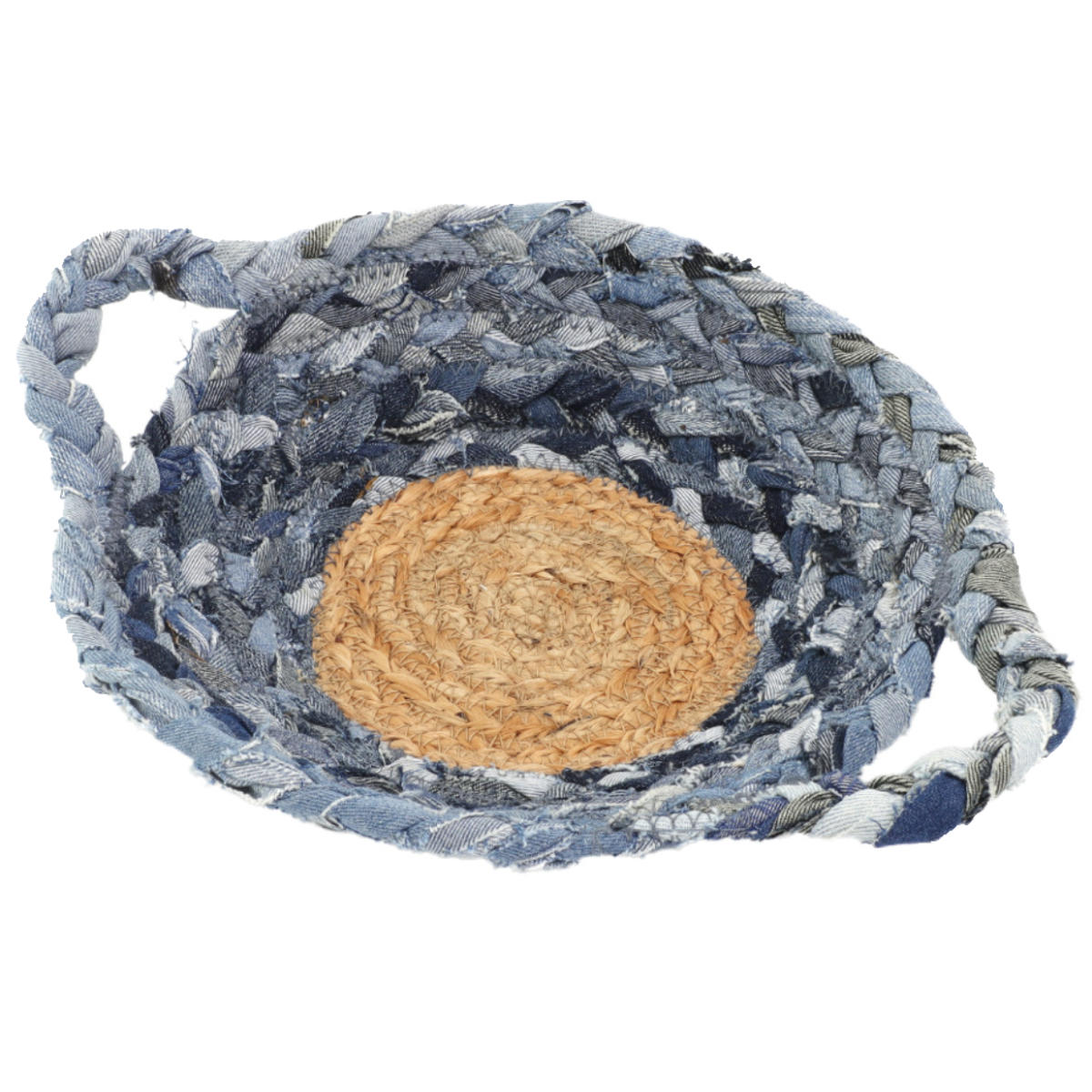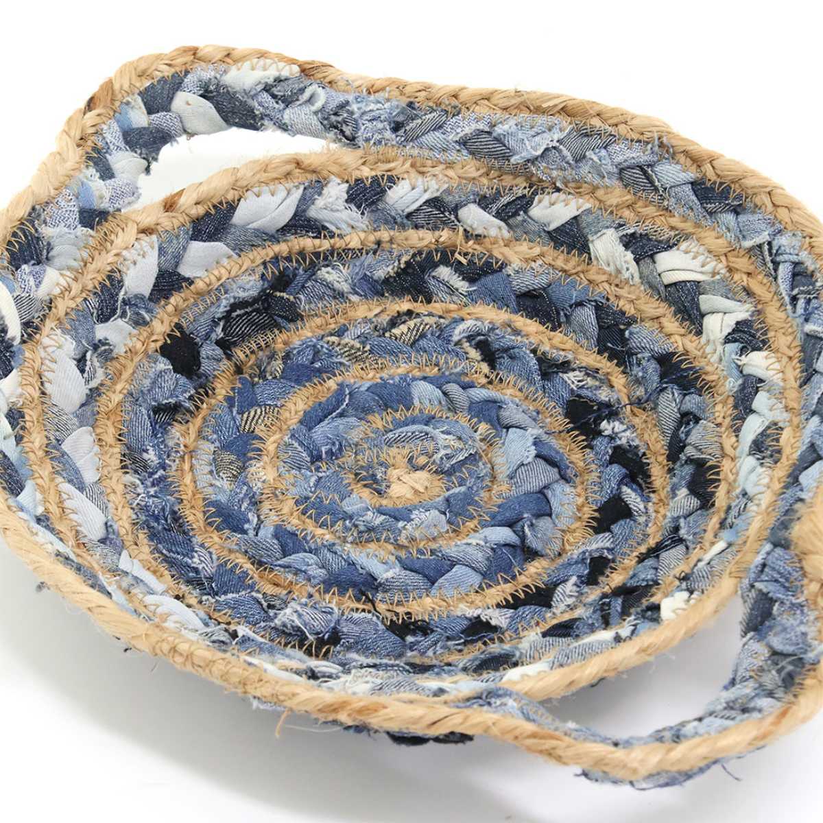 リサイクルデニムを編み込んで作られたデニムチンディの切れ端を再利用し、ジュート素材と組み合わせた環境に優しいエコなトレイです。