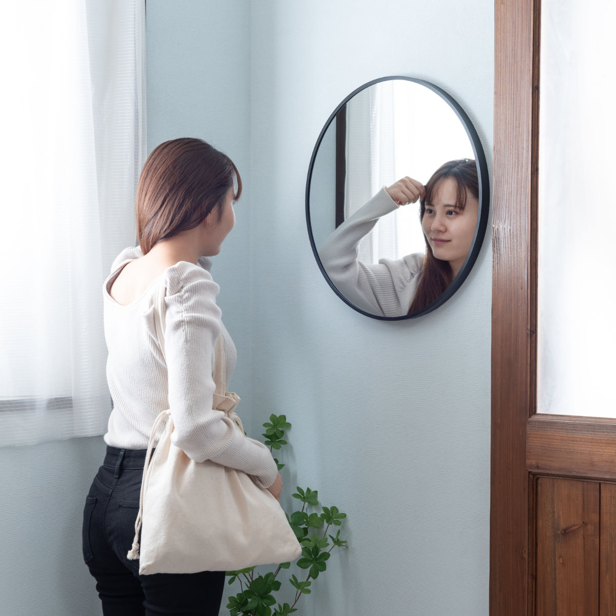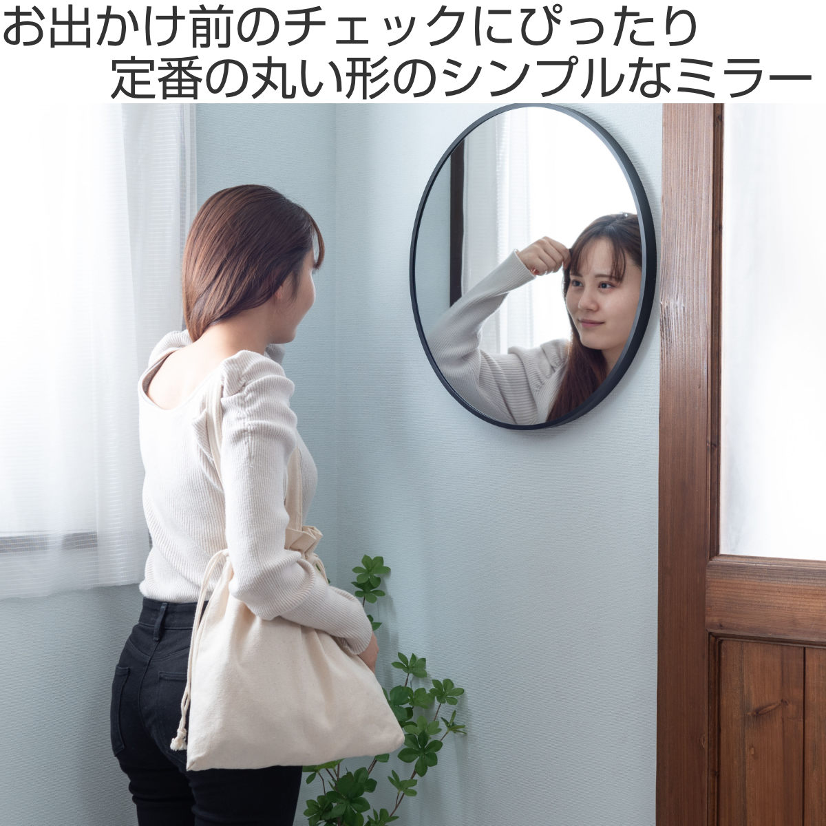 お出かけ前のチェックに丁度いい円形ミラー
