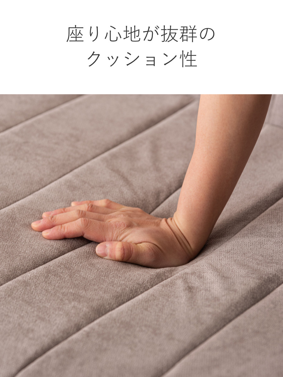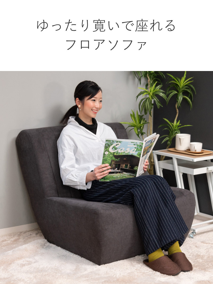クッション性が高くゆったりとくつろいで座ることができるフロアソファです。シンプルでモダンなデザインのため、どんなインテリアにも合わせやすく、落ち着きのあるカラーがお部屋を癒しの空間に演出してくれます。