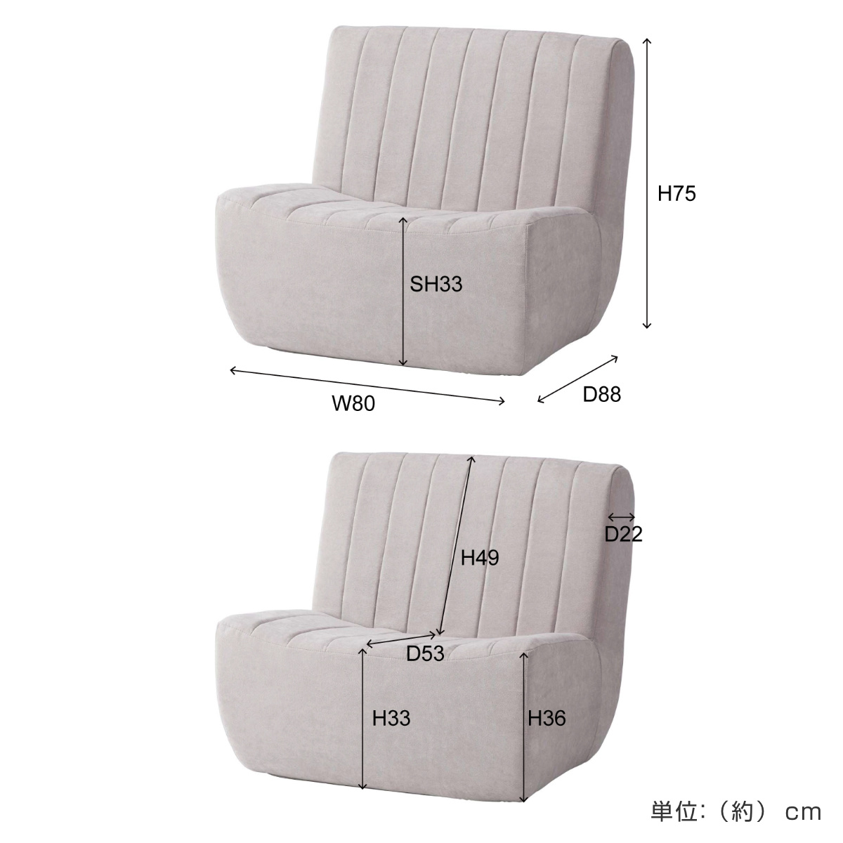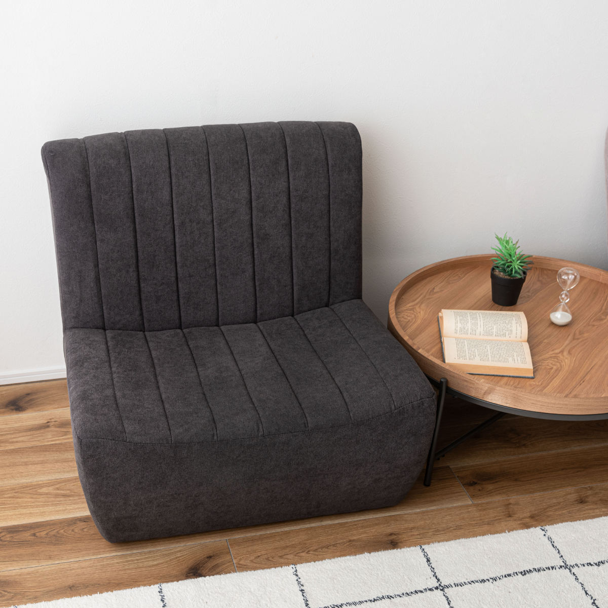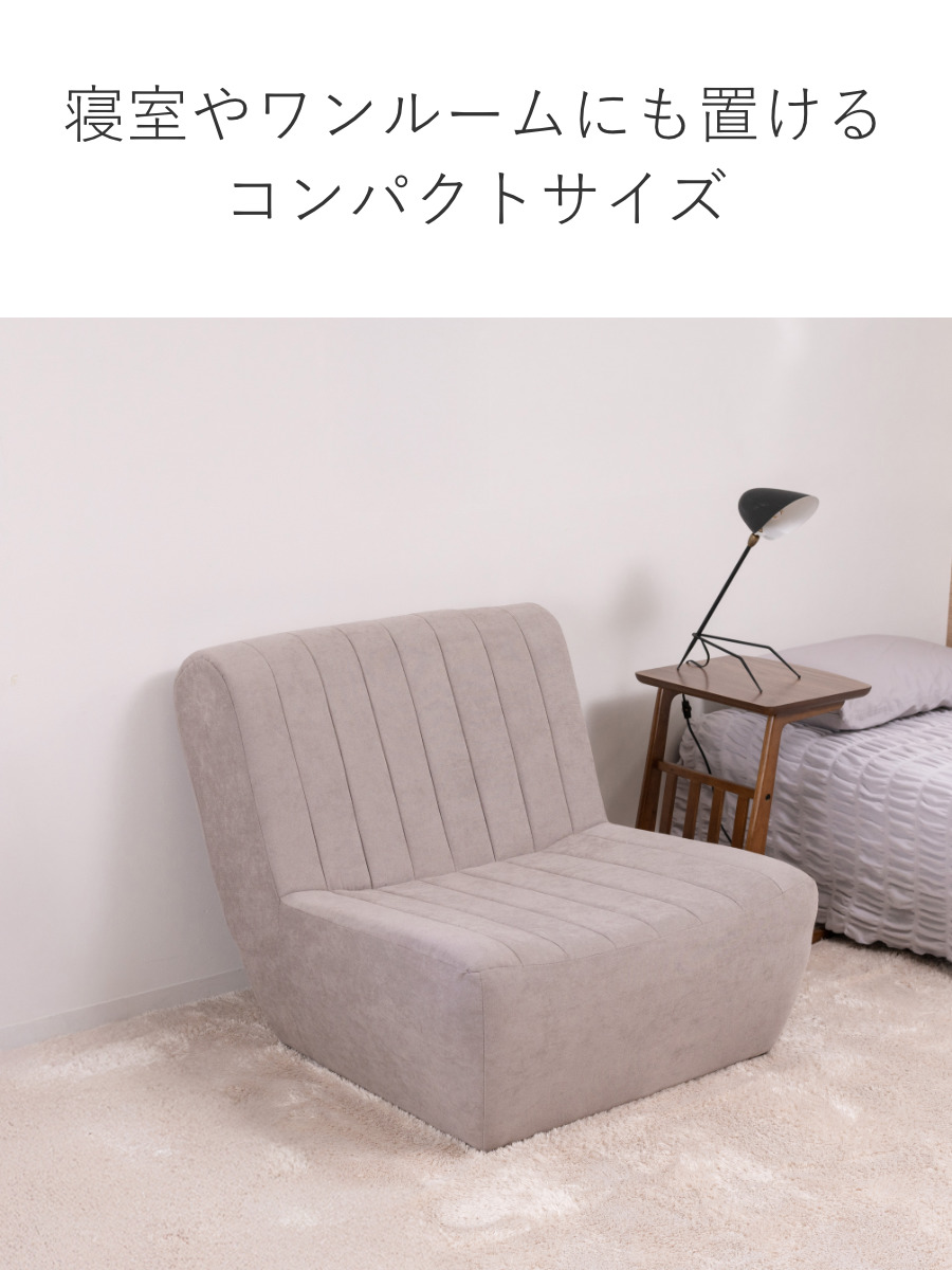 置く場所を選ばず、寝室やワンルームにも置きやすいコンパクトサイズです。肘掛けがないので圧迫感を軽減しお部屋を広く感じさせてくれます。