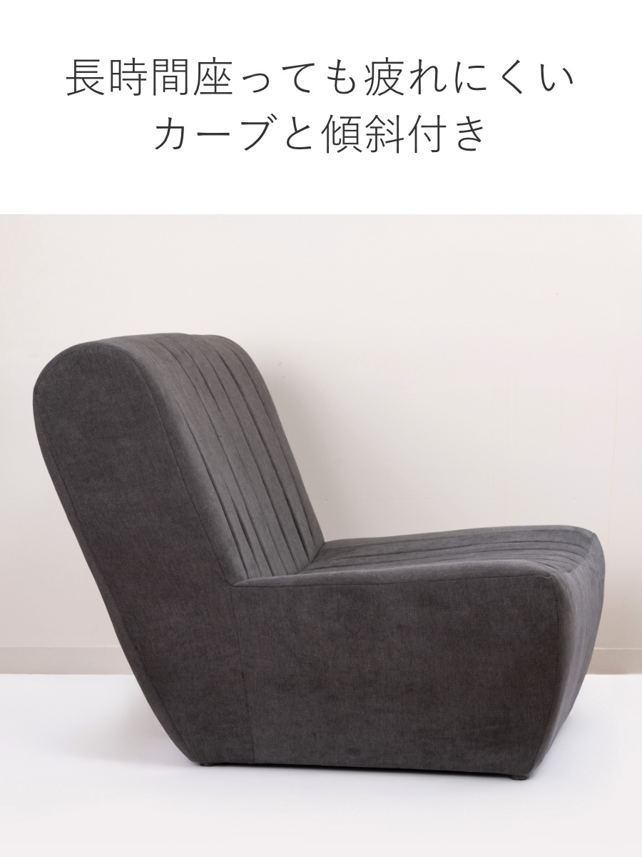座面には快適な座り心地が得られるカーブと、背もたれにゆったりと身体を預けてリラックスした姿勢で座れる傾斜が付いています。