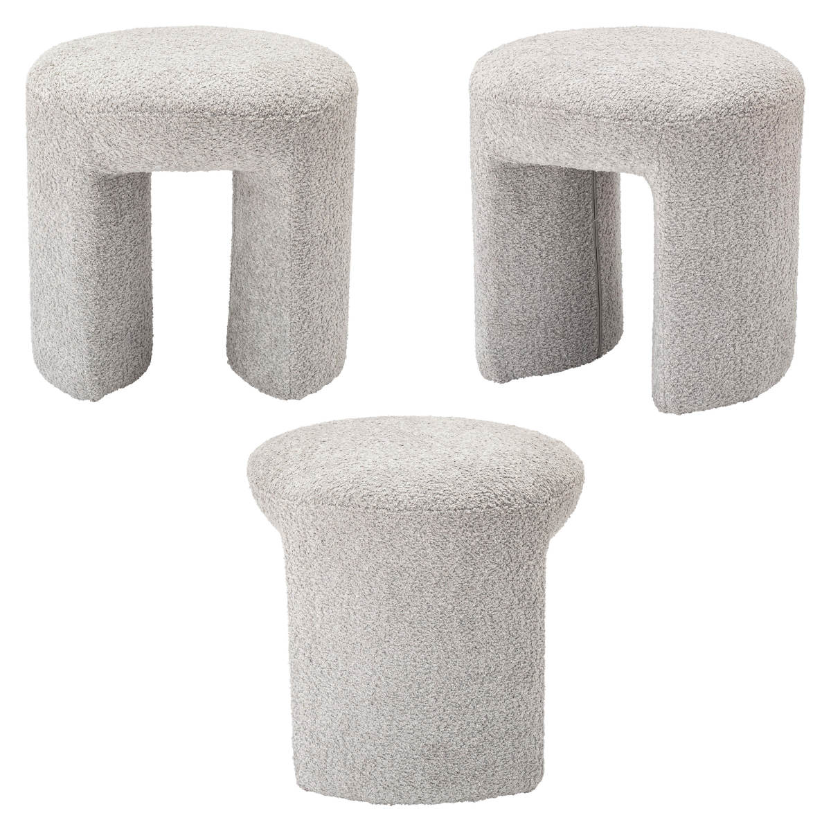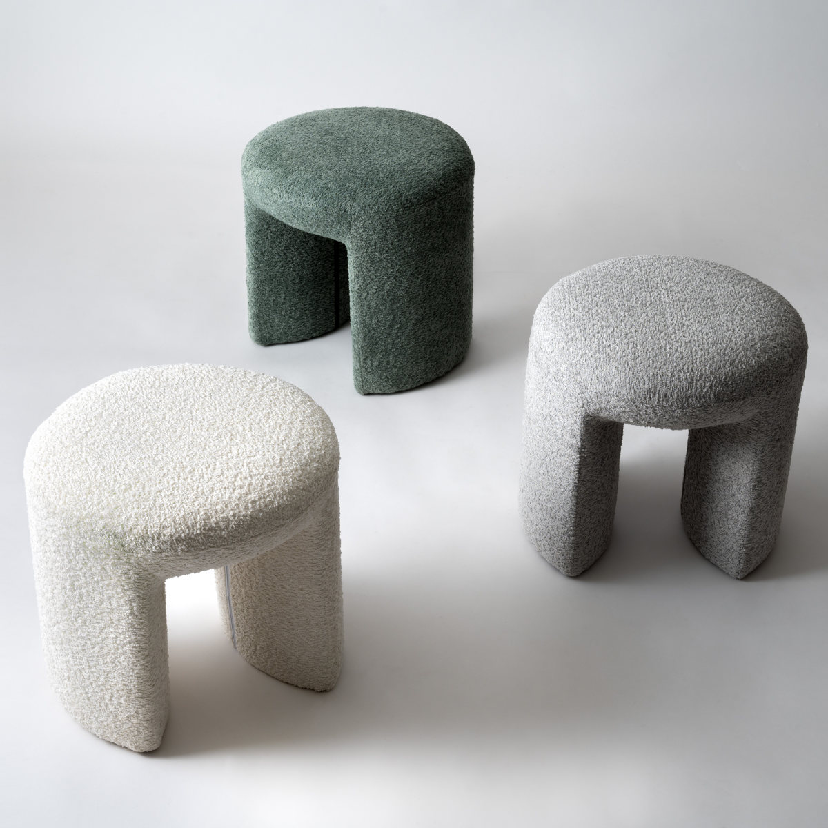 オブジェのようなユニークなフォルムのスツールです。シンプルな色味と素材のためお部屋に合わせやすく馴染みやすいです。脚の間が空いたデザインになっているのでお部屋に圧迫感を与えません。