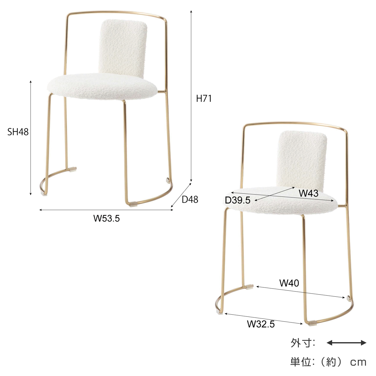 - 約幅53.5×奥行48×高さ71cm