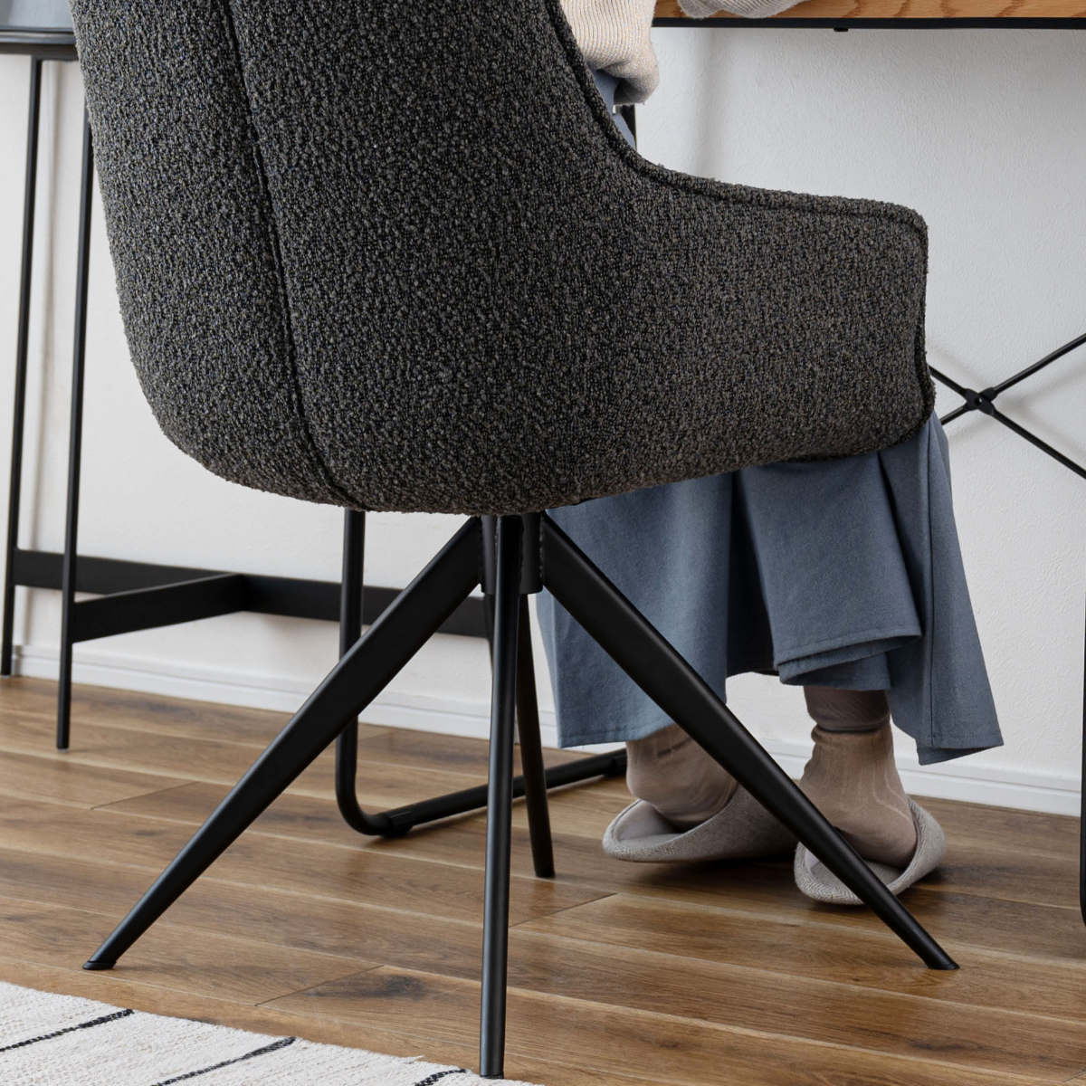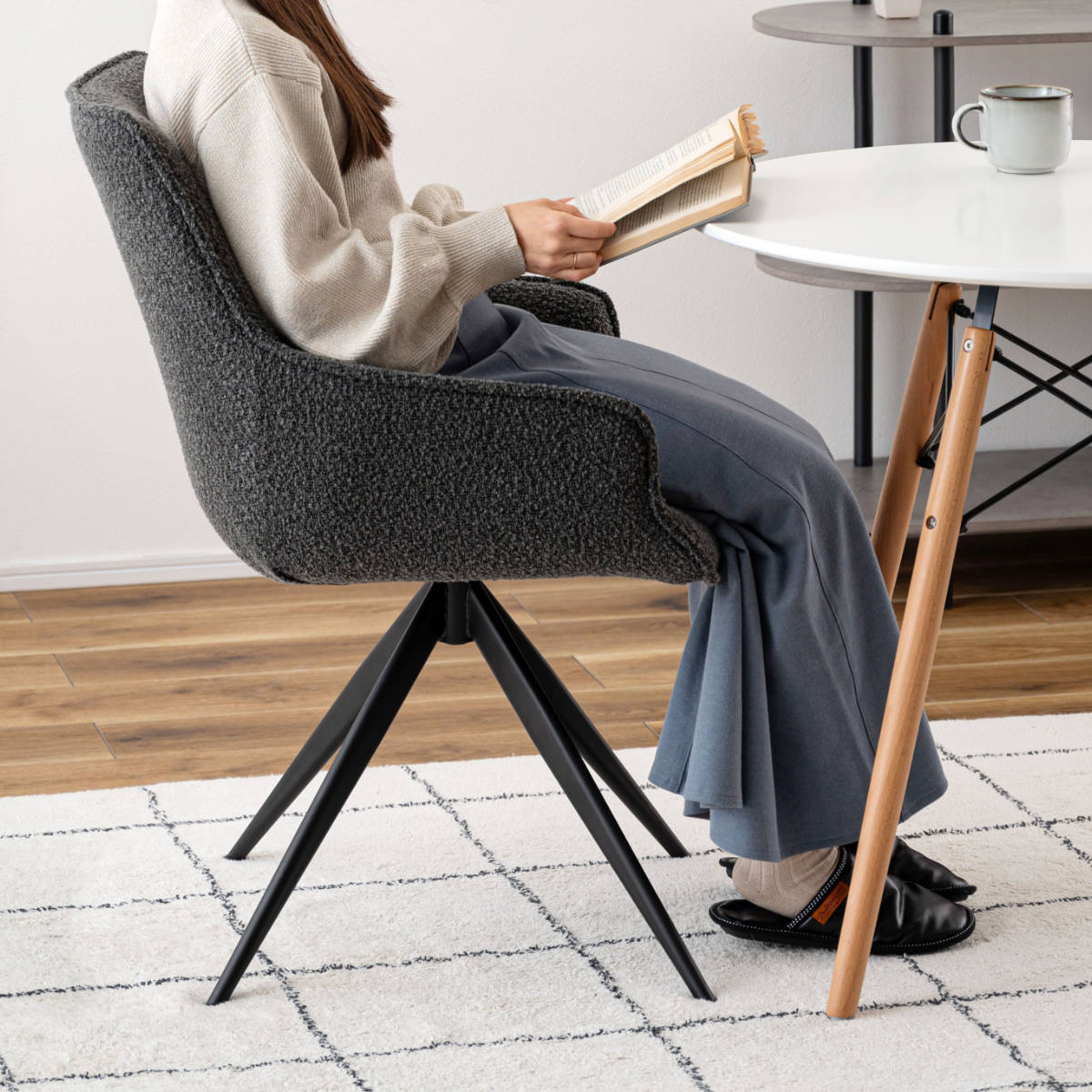 ダイニングシーンのみならず、在宅ワークや学習時のデスクチェアとしても活用できます。回転チェアで前にも横にもくるっと向きを変えられるので、近くの物も立ち上がらずに手を伸ばせて作業効率アップに繋がります。