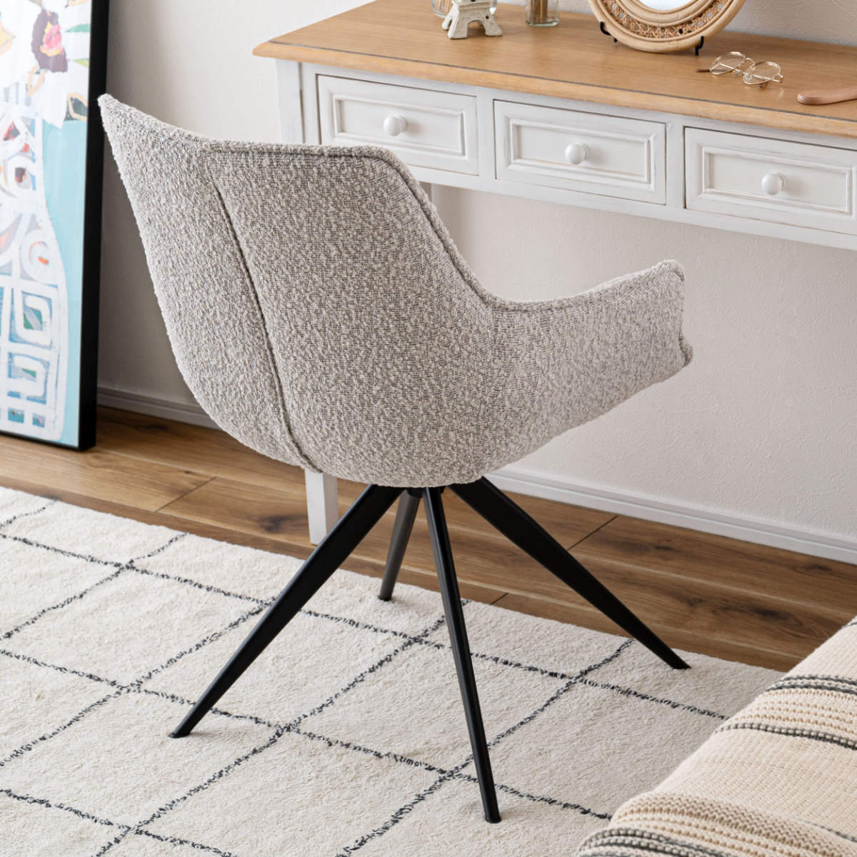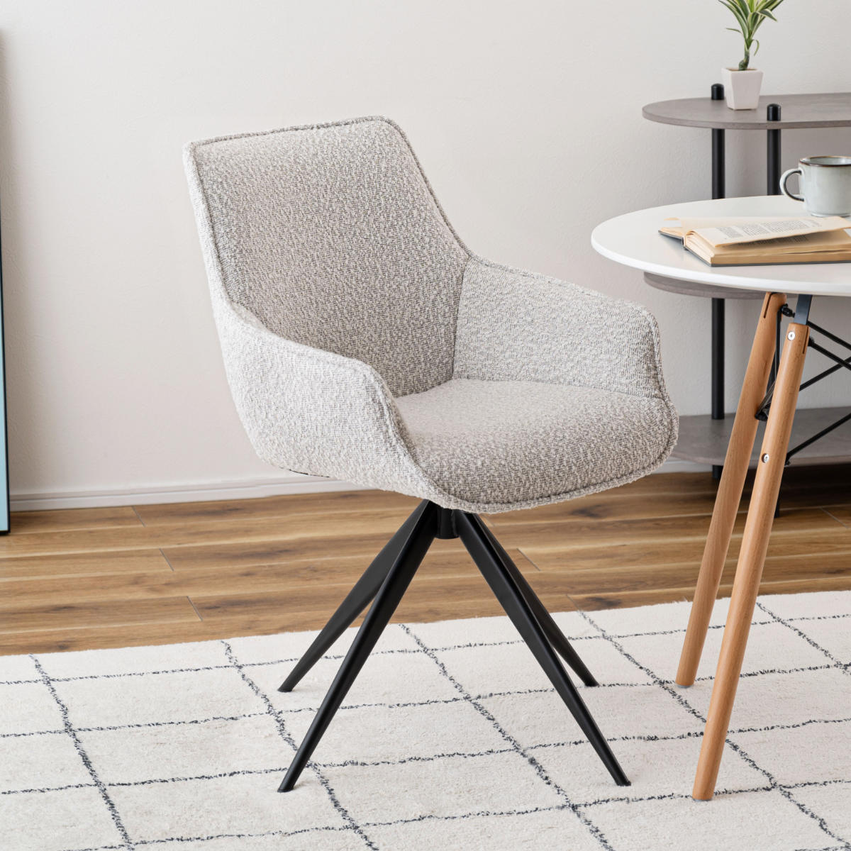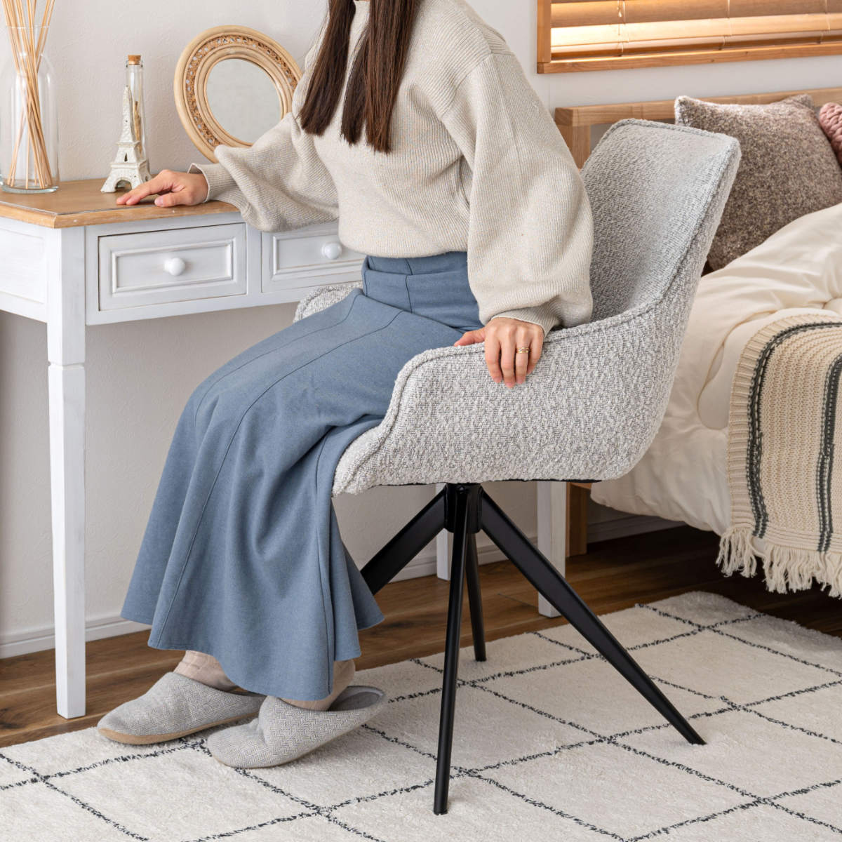立体的で動きのあるファブリック生地を採用し、シンプルで洗練されたデザインの回転チェアです。座面が回転することで、立つ・座る・振り向きの動作が楽に行えます。