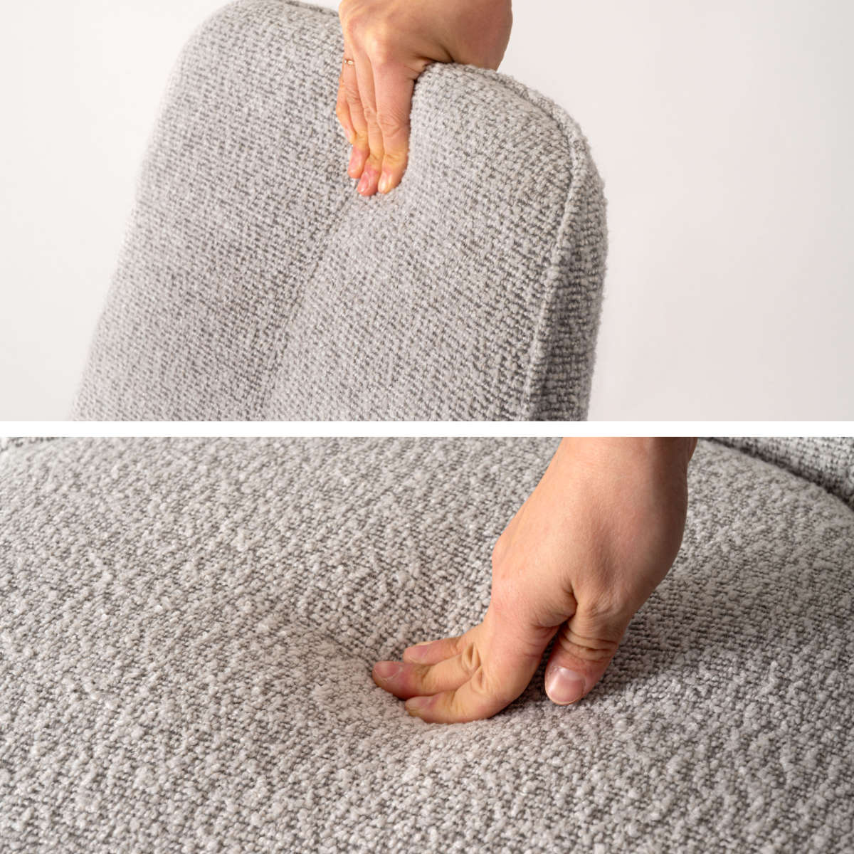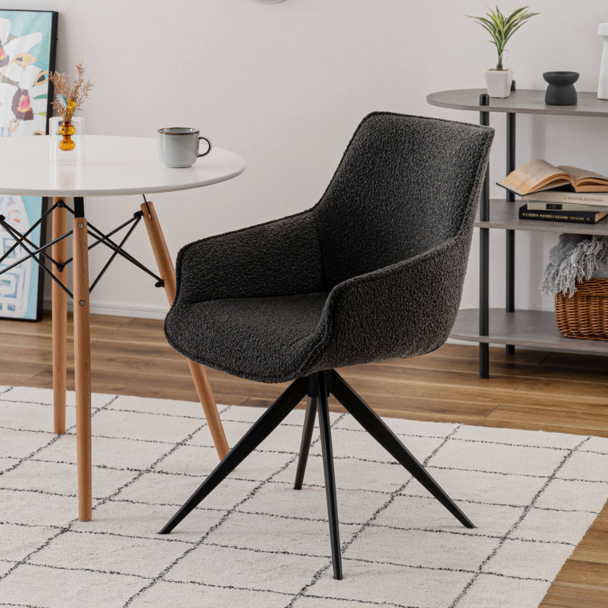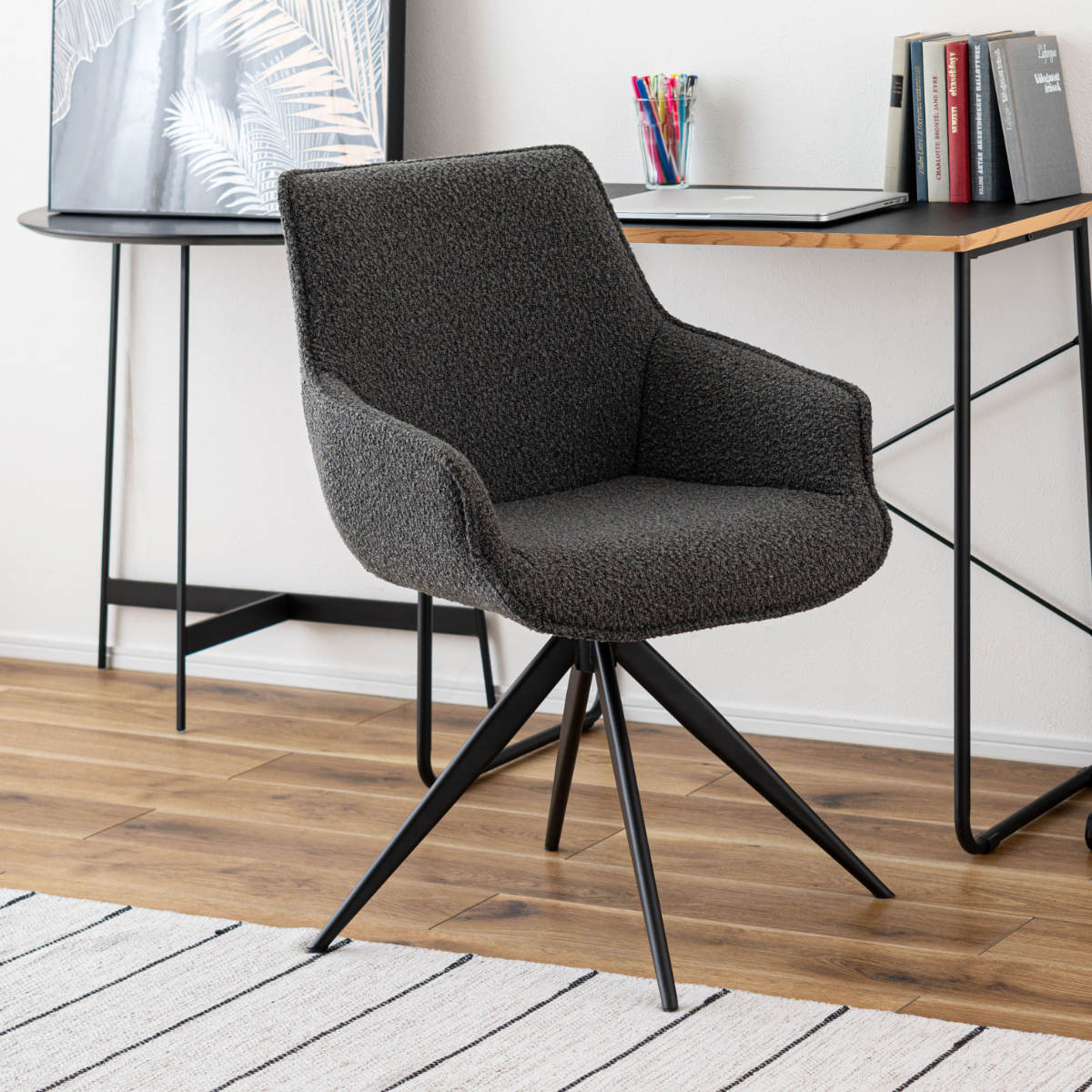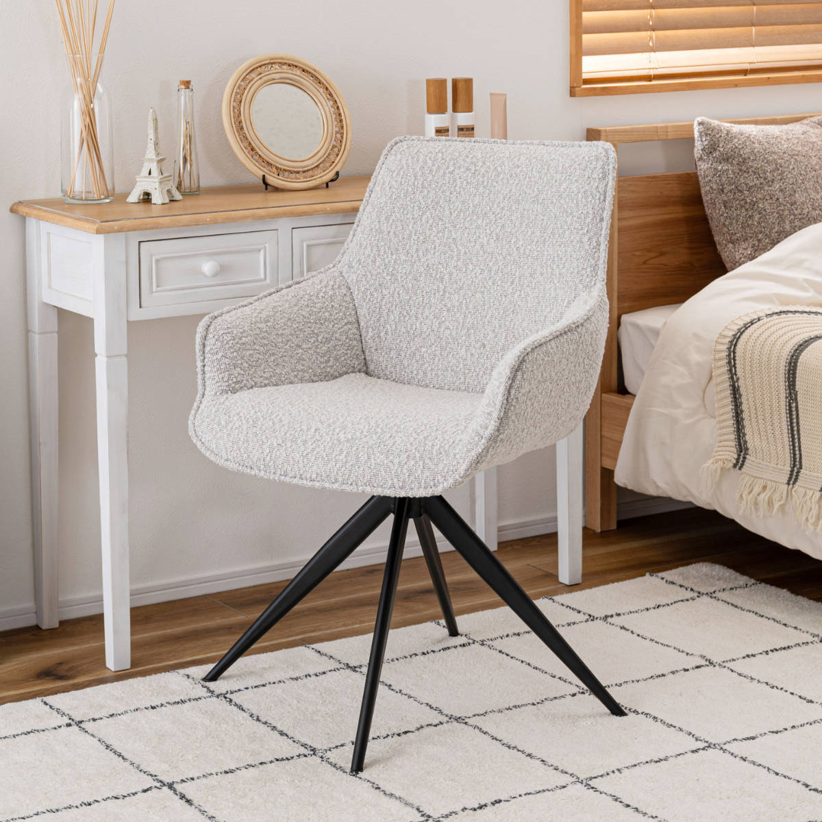 立体的で動きのあるファブリック生地を採用し、シンプルで洗練されたデザインの回転チェアです。座面が回転することで、立つ・座る・振り向きの動作が楽に行えます。
