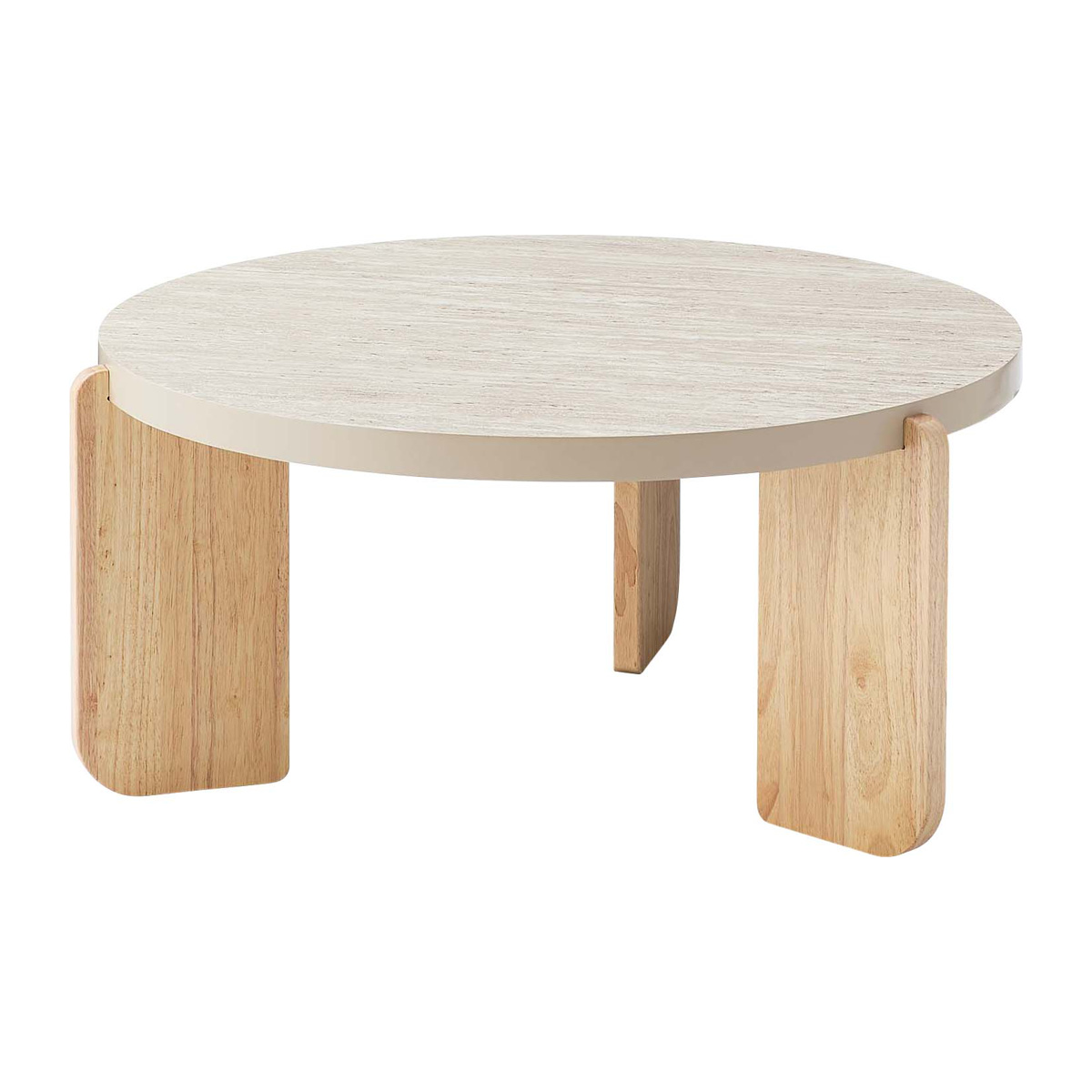 円型の天板と天然木の脚が合わさったオシャレなデザインのリビングテーブルです。リビングで小物を置いたりちょっとした作業台になります。