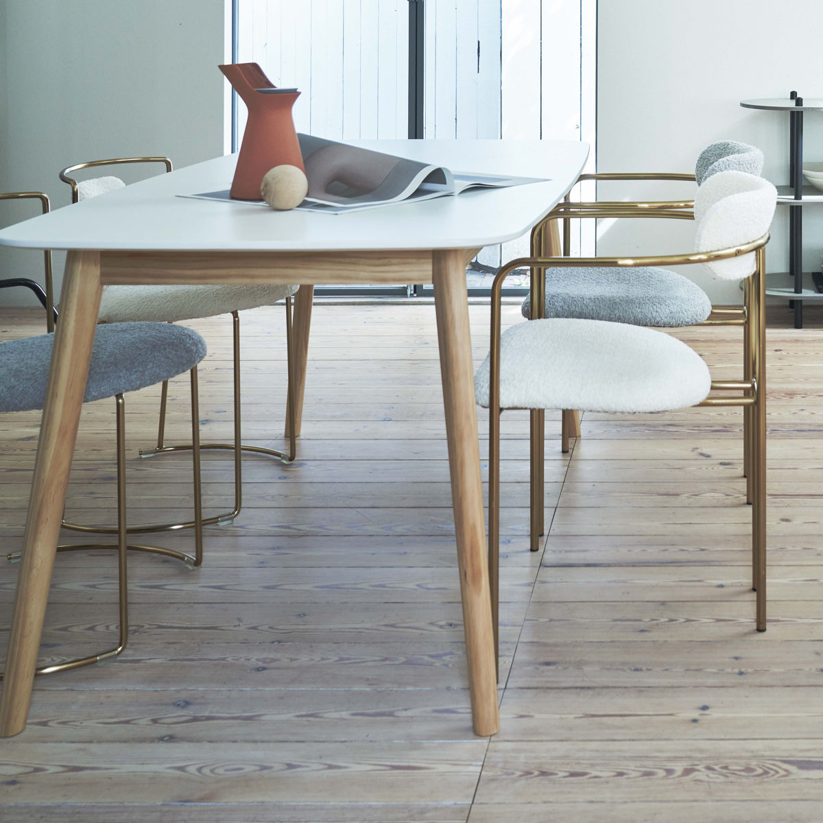 同シリーズのチェアとテーブルを組み合わせることができます。テーブルにチェアがスッキリ収まります。