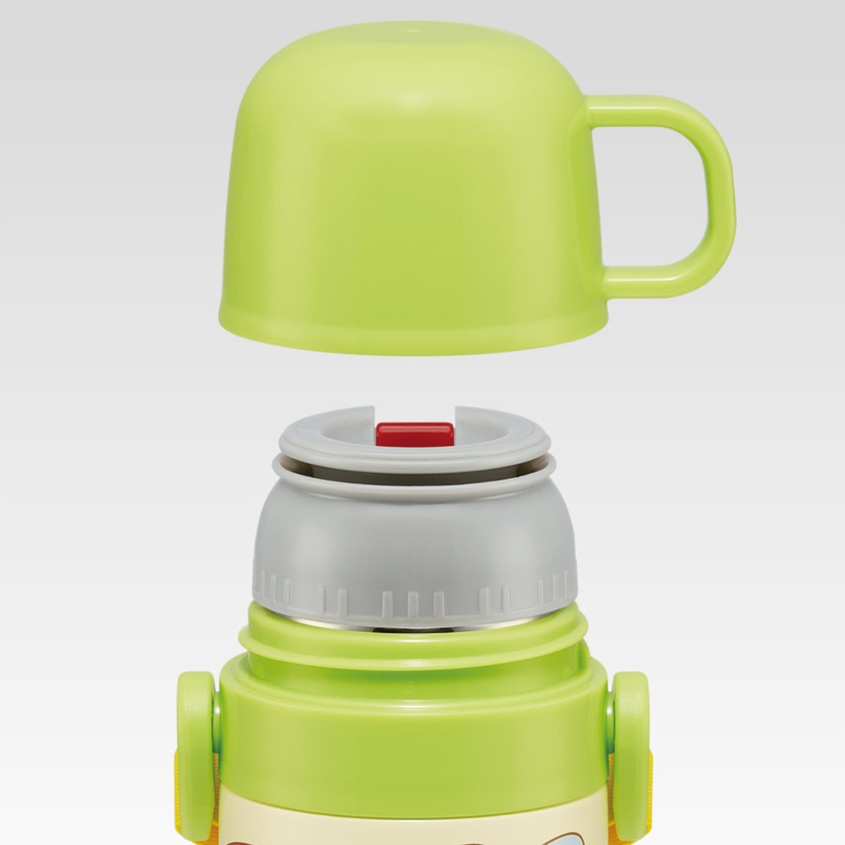蓋と中栓を付けると、コップ飲みの水筒になります。温かい飲み物や冷たい飲み物にもご使用いただけます。