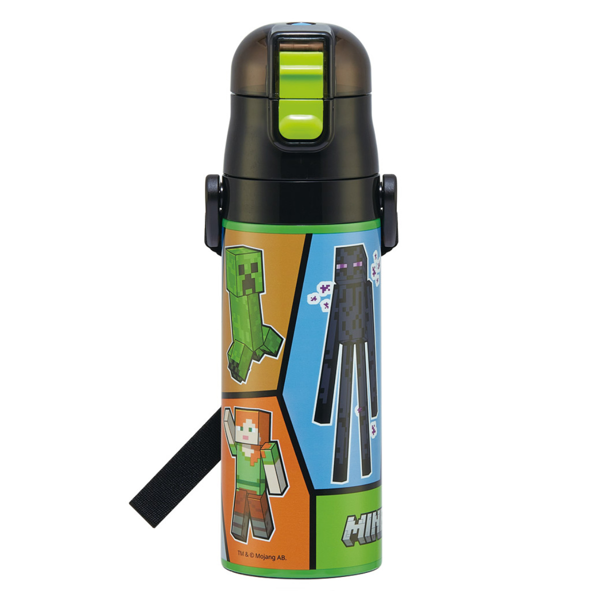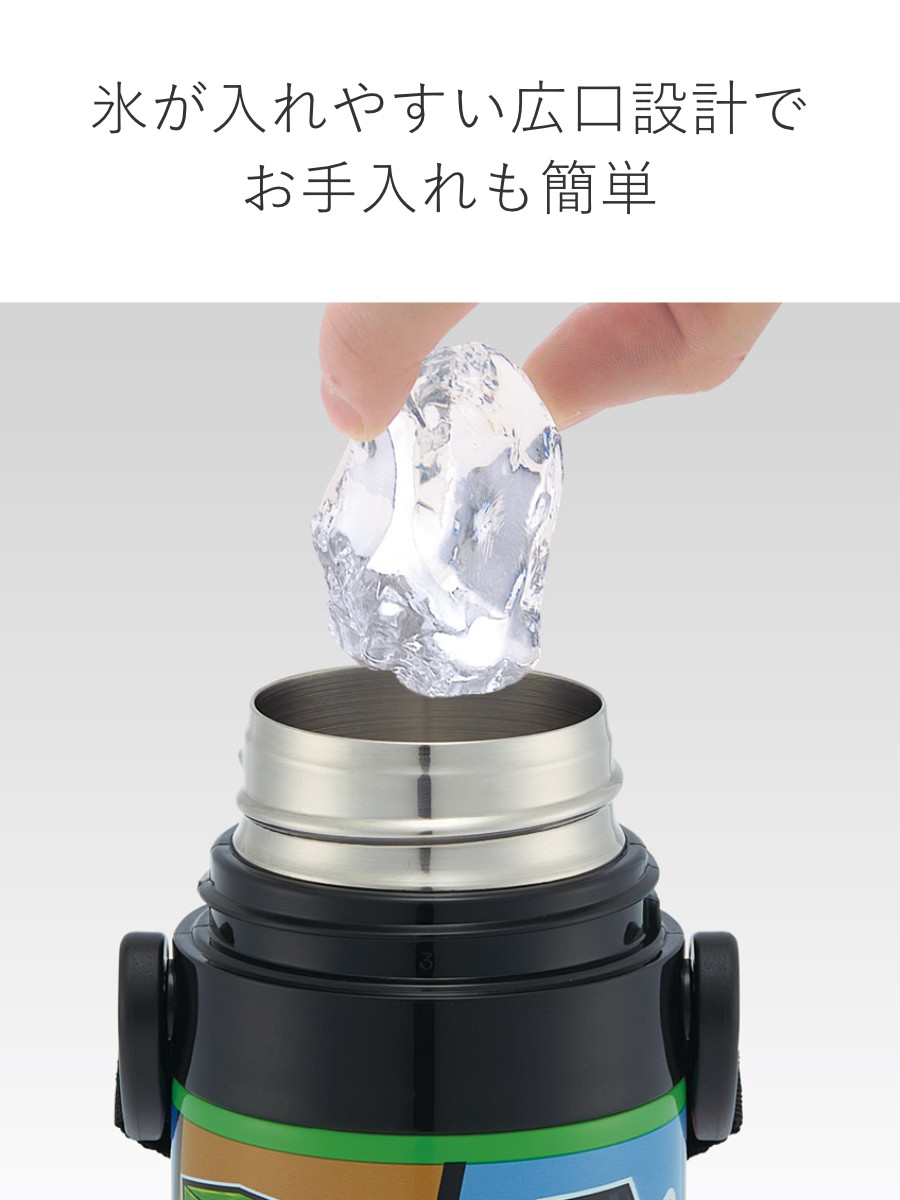 水筒の蓋はボタンを押すだけで開けることができるワンタッチ式です。飲み終わったら蓋をカチッと閉めるだけなので、小さなお子様でも簡単に開閉できます。