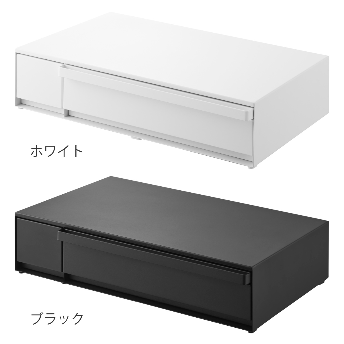 | 耐荷重 | 天板:20kg(静止荷重) 引き出し(大・小)・スライドテーブル:各3kg(天板に2kg以上の物を置いた状態の静止荷重) |