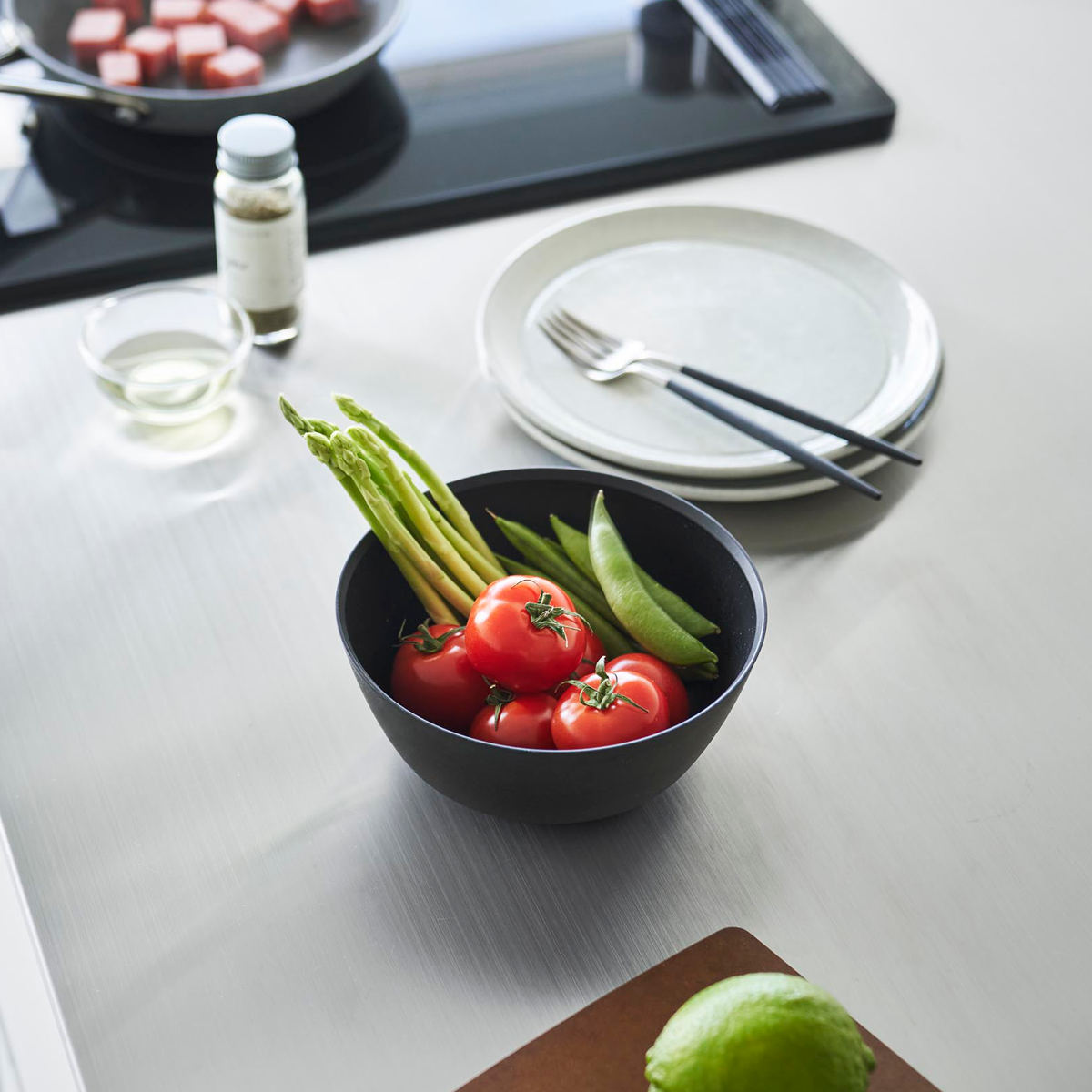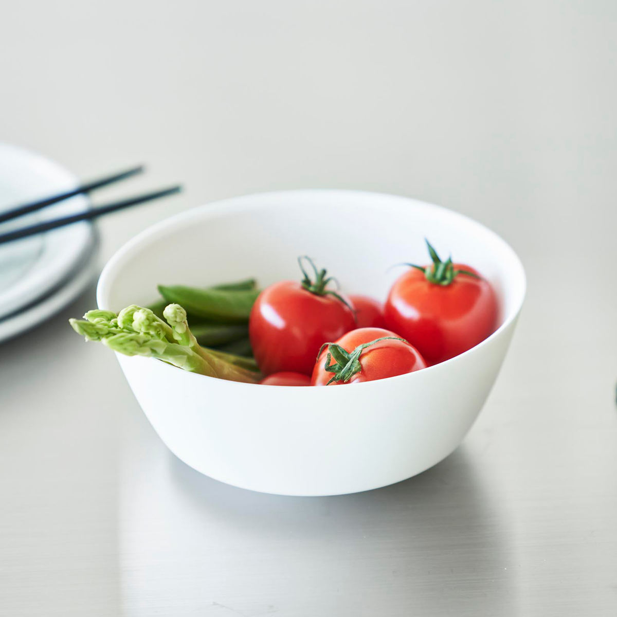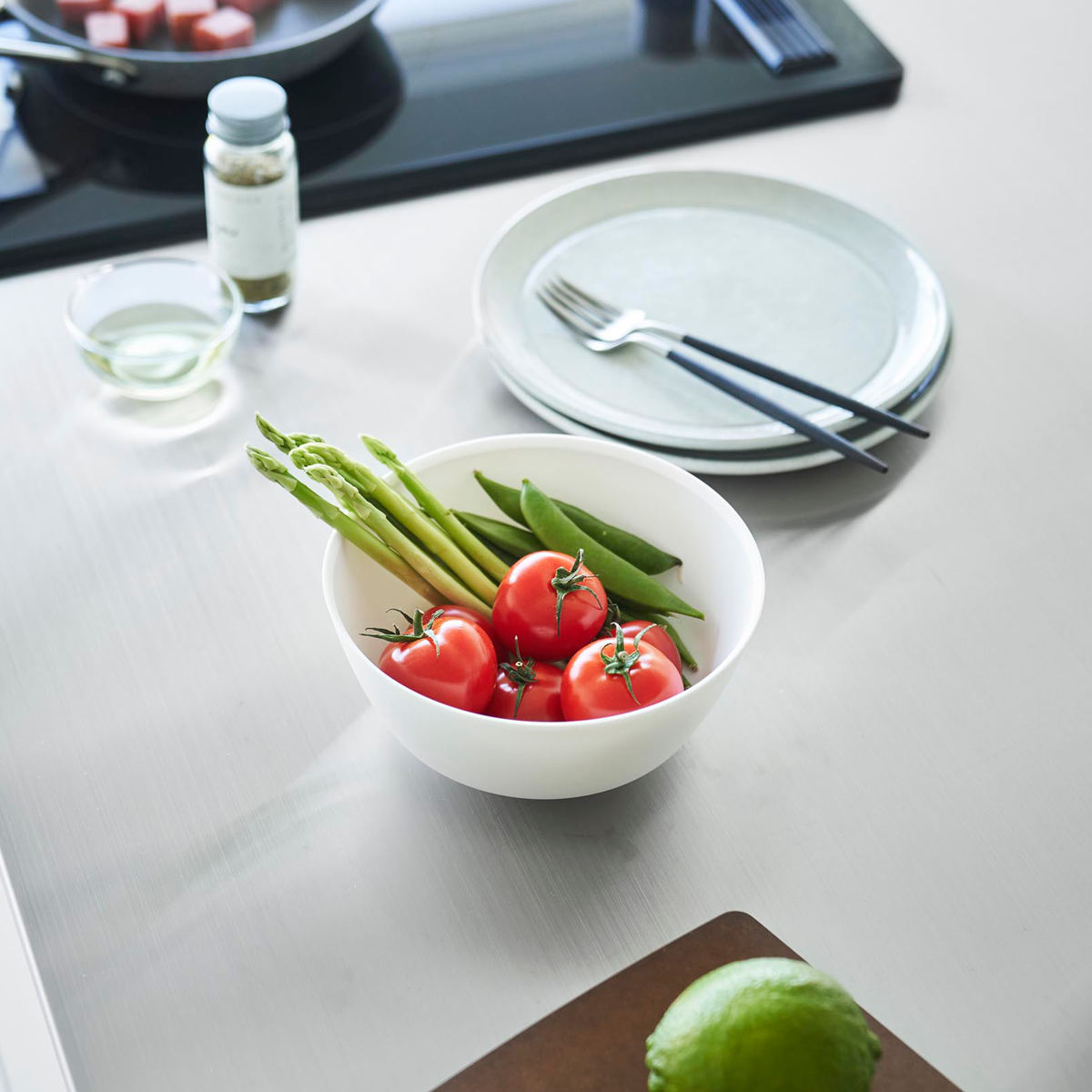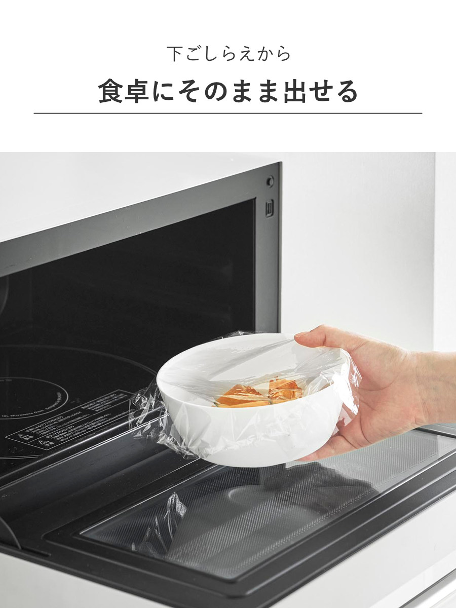 電子レンジで加熱できるので蒸し野菜や下ごしらえに便利です。そのまま食卓に出せるスッキリとしたデザインで洗い物を減らすことができます。調理をしてから食器として使えるボウルは幅広く活用できます。