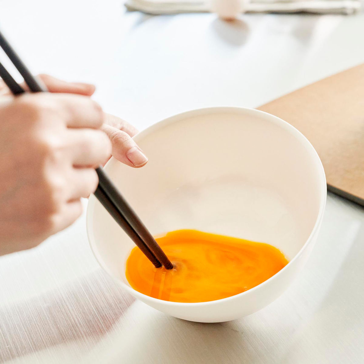 斜めに傾けて軽く手で持つだけで安定して混ぜやすい