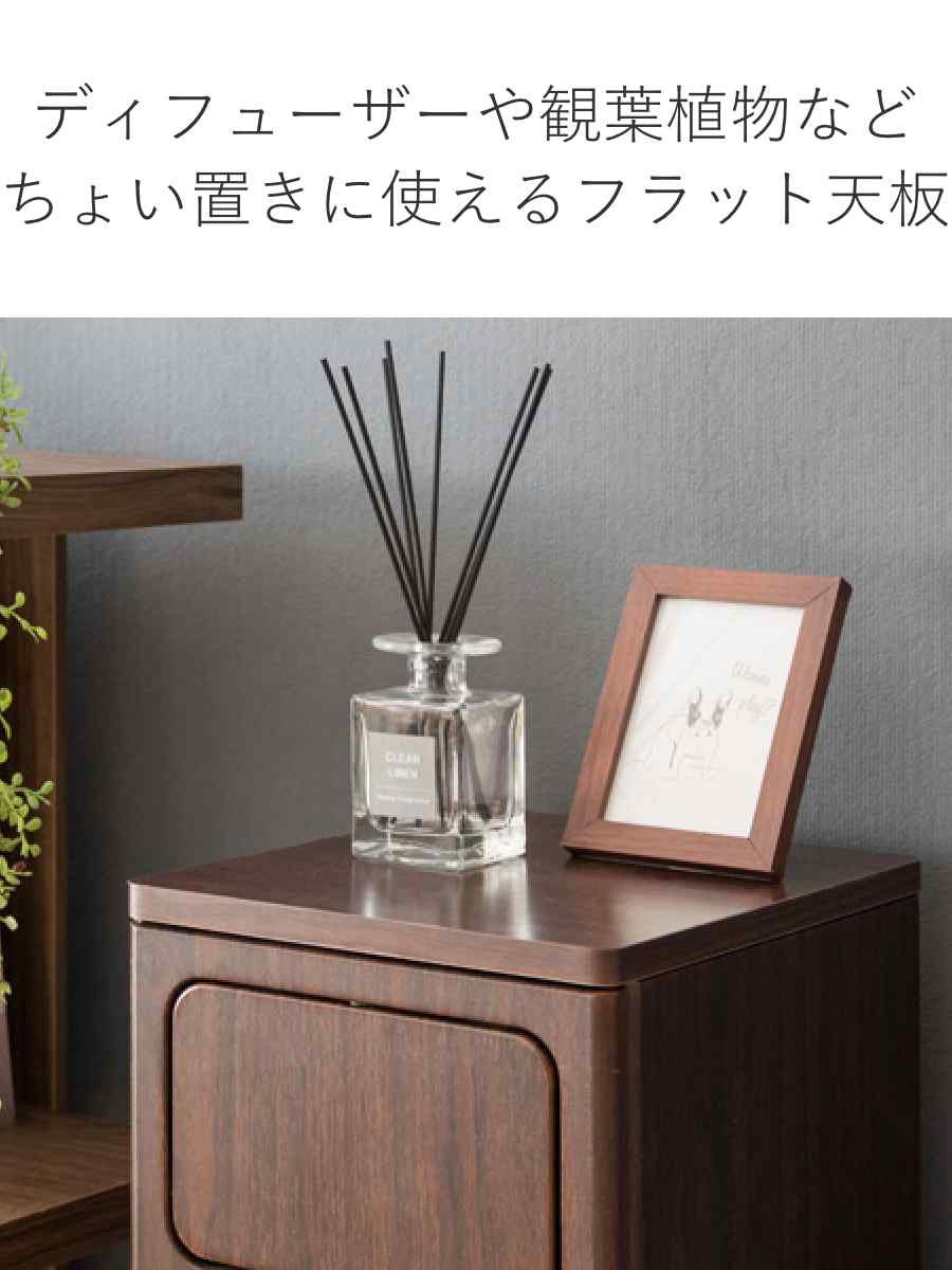 天板がフラットになっているため、キッチン雑貨や観葉植物、ディフューザーなどのちょっとした小物が置けます。天板や扉の角はケガをしないように丸く加工されているので、安心安全です。