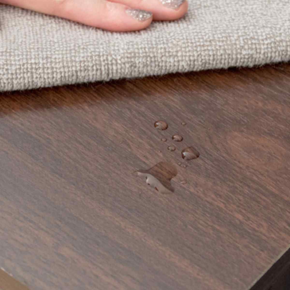 木板は塩化ビニル貼りのパーティクルボードで、撥水性・耐久性に優れています。水に濡れてもひと拭きでキレイになるので、キッチンに設置するのにもおススメです。