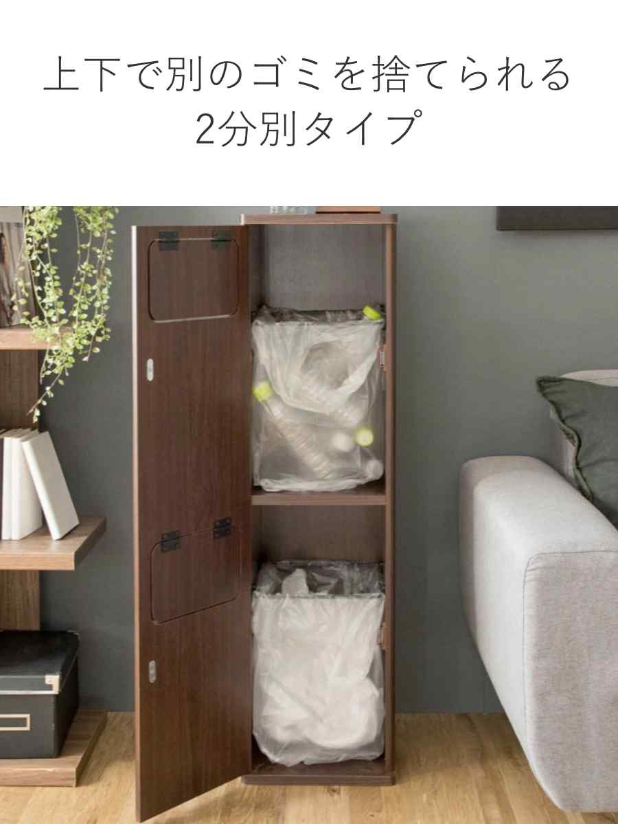 上下で別のゴミが捨てられる2分別仕様になっており、それぞれ容量は20Lサイズです。分別ゴミが出やすいキッチンはもちろん、リビングや寝室など様々な場所で、ゴミを分けながら捨てられます。後で分別する手間が省けて便利です。