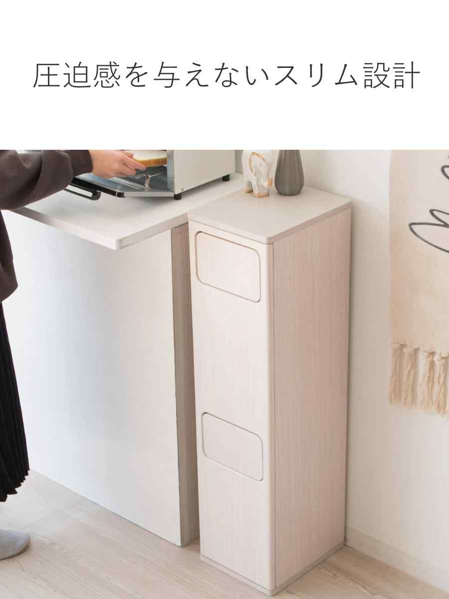 ゴミ箱に見えない、スタイリッシュなデザインのダストボックスです。幅25cmのスリム型なのでどこに置いても圧迫感を与えず、狭いキッチンや家具と家具の隙間でも設置が可能です。
