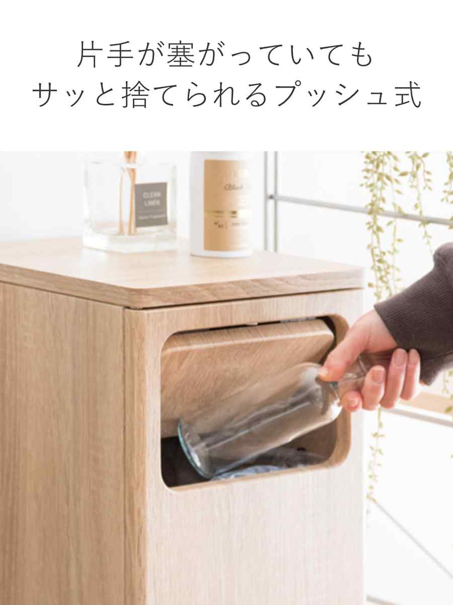インテリアに溶け込む木目調の2分別プッシュ式ダストボックス