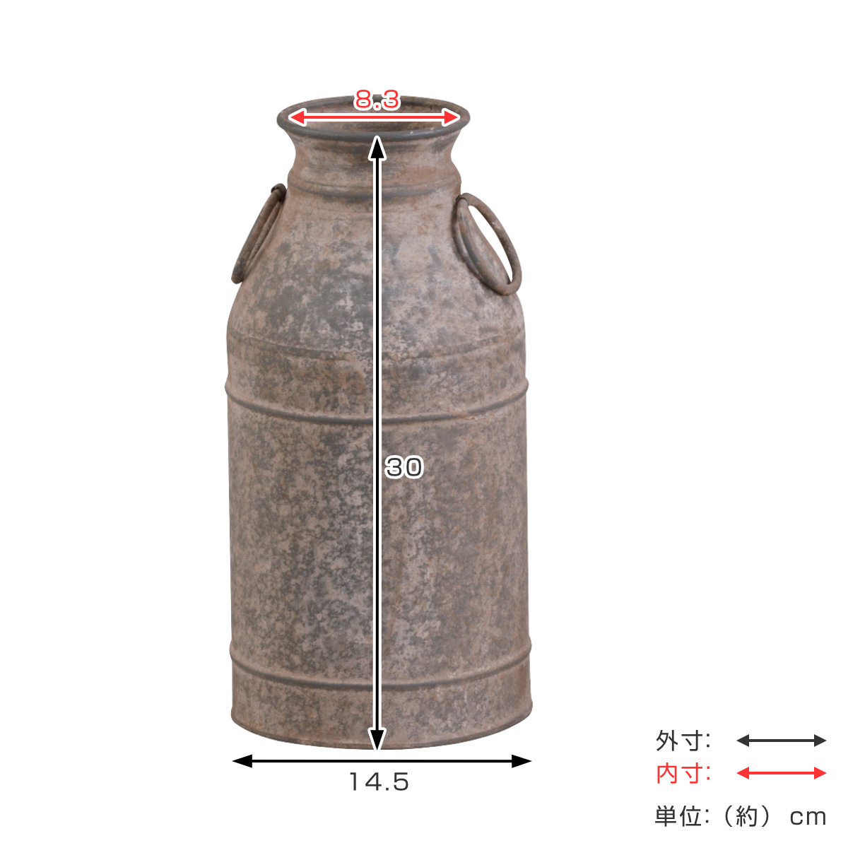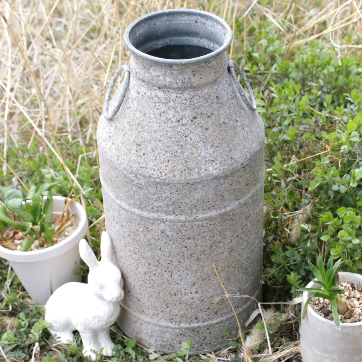 ヴィンテージ加工が施された存在感抜群のミルクカン。お庭のアクセントとしてそのまま飾ったり、スワッグを飾ったり、ポスター等長さのある物の収納にもおすすめです。