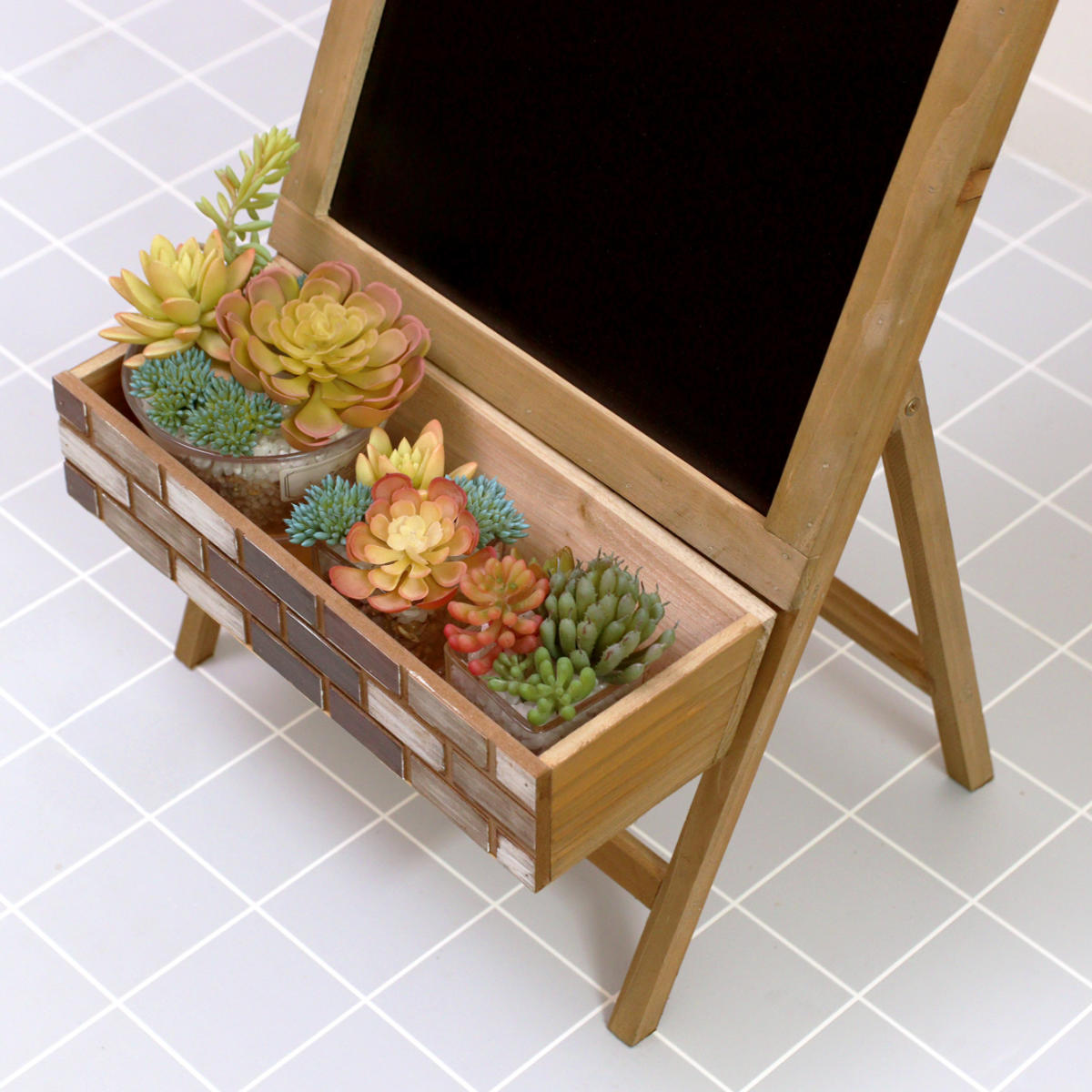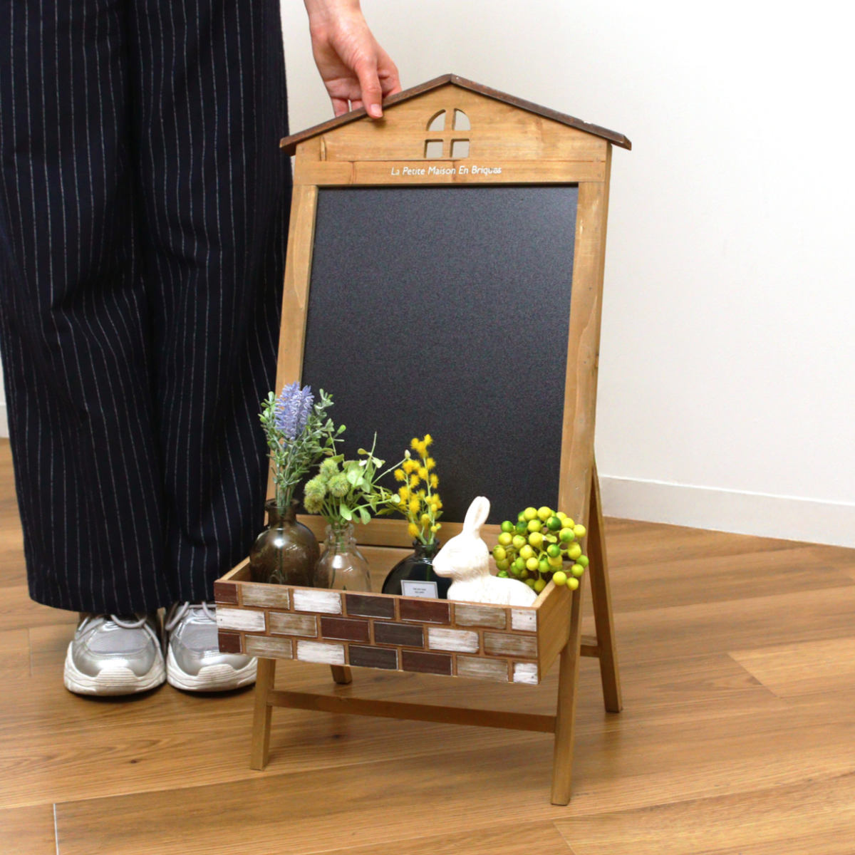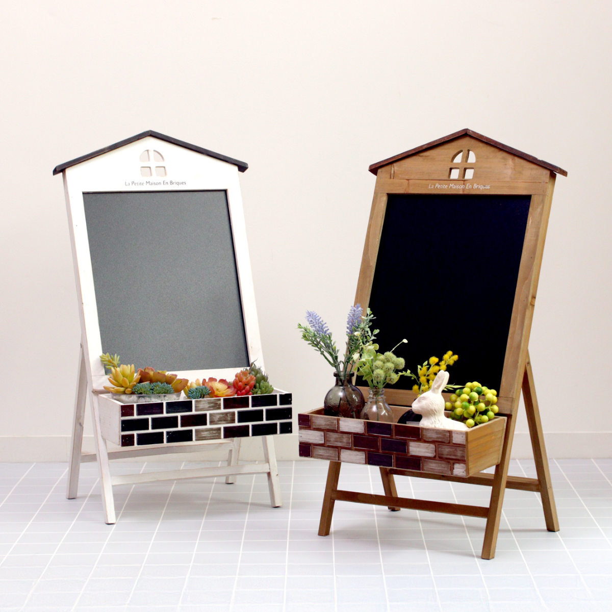 レンガ造りの小さなお家をイメージしたサインボードポットです。お庭やお部屋のガーデンアイテムとしてや、黒板板が付いているのでお店の案内ボードにもぴったりです。アンティークな風合いと天然木の温かみのある素材感が雰囲気のある空間を演出します。
