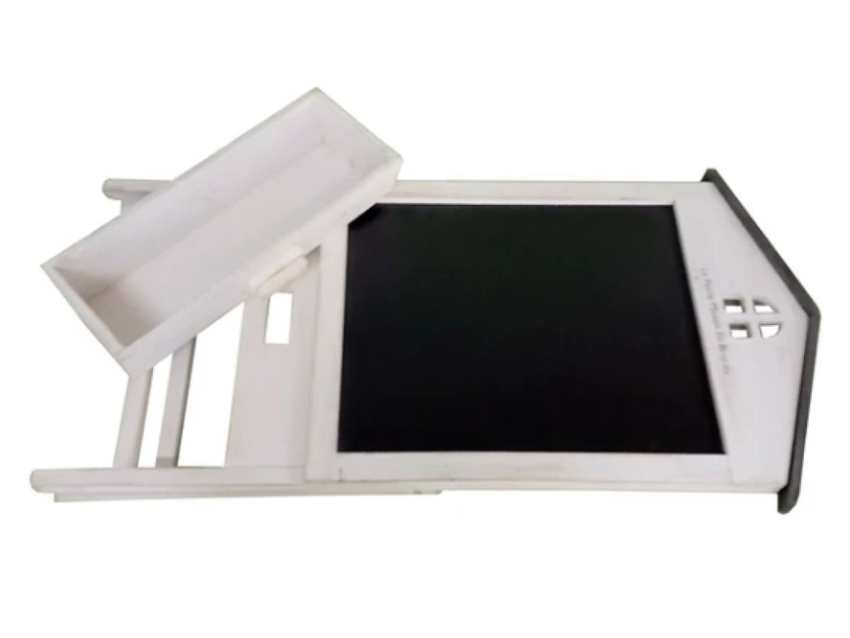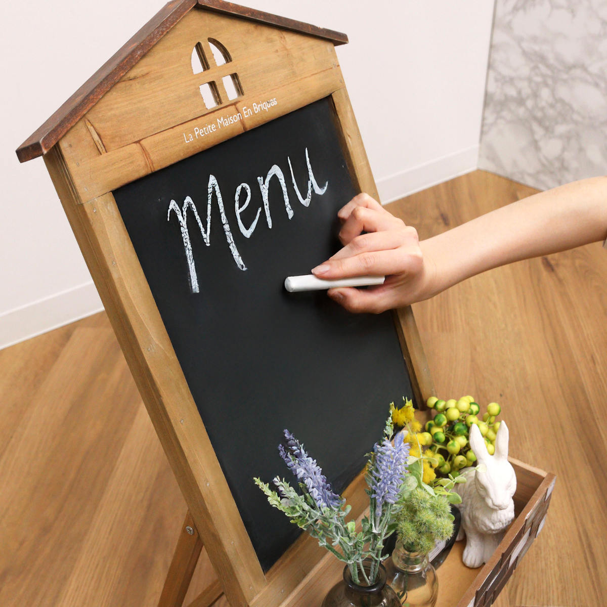 黒板下のボックス部分は取り外し可能です。使わない時はコンパクトに折りたたむことができ、省スペースに収納できます。