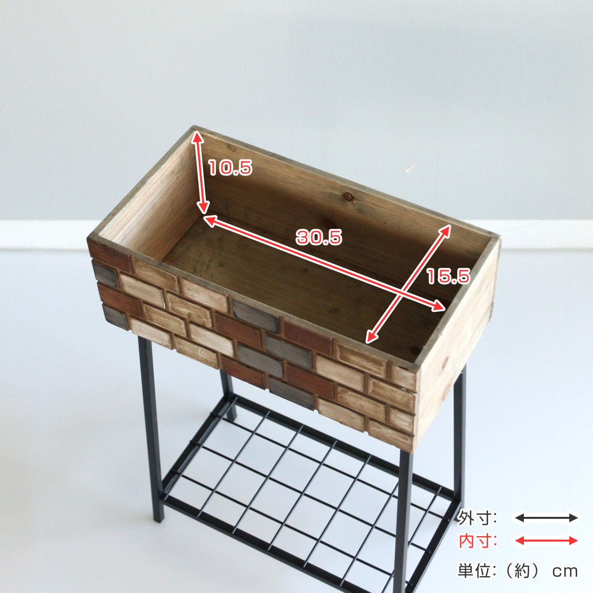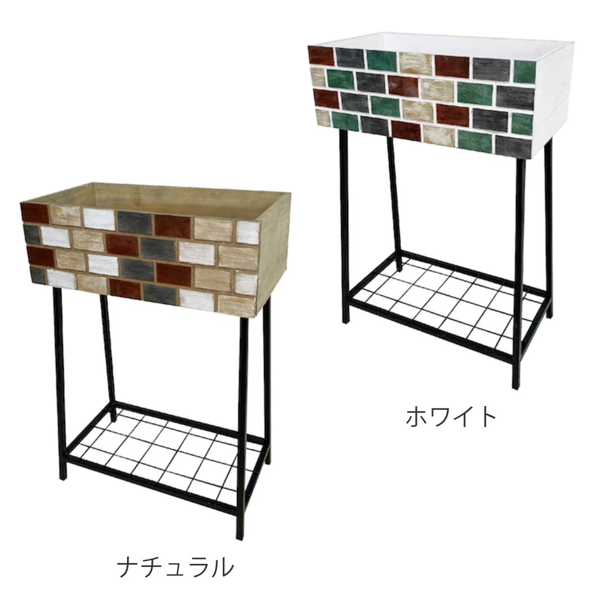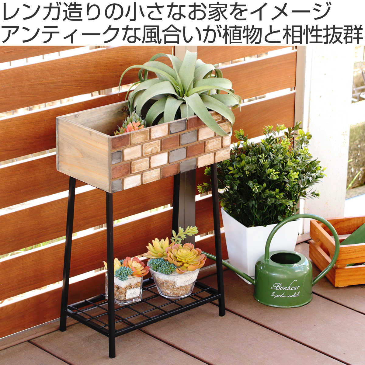 レンガ造りの小さなお家をイメージしたボックススタンドです。ガーデンアイテムとして観葉植物を飾ったり、雑誌や小物なども一緒に置いてオープンシェルフとしてもお使いいただけます。アンティークな風合いと天然木の温かみのある素材感が雰囲気のある空間を演出します。