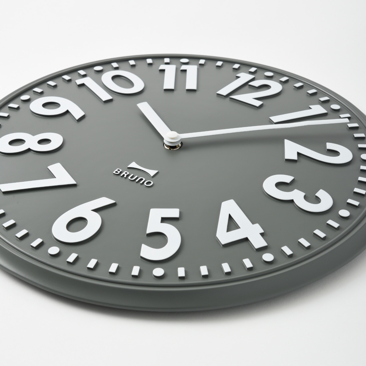 ●立体的なエンボス文字盤が見やすいスタイリッシュな掛け時計です。