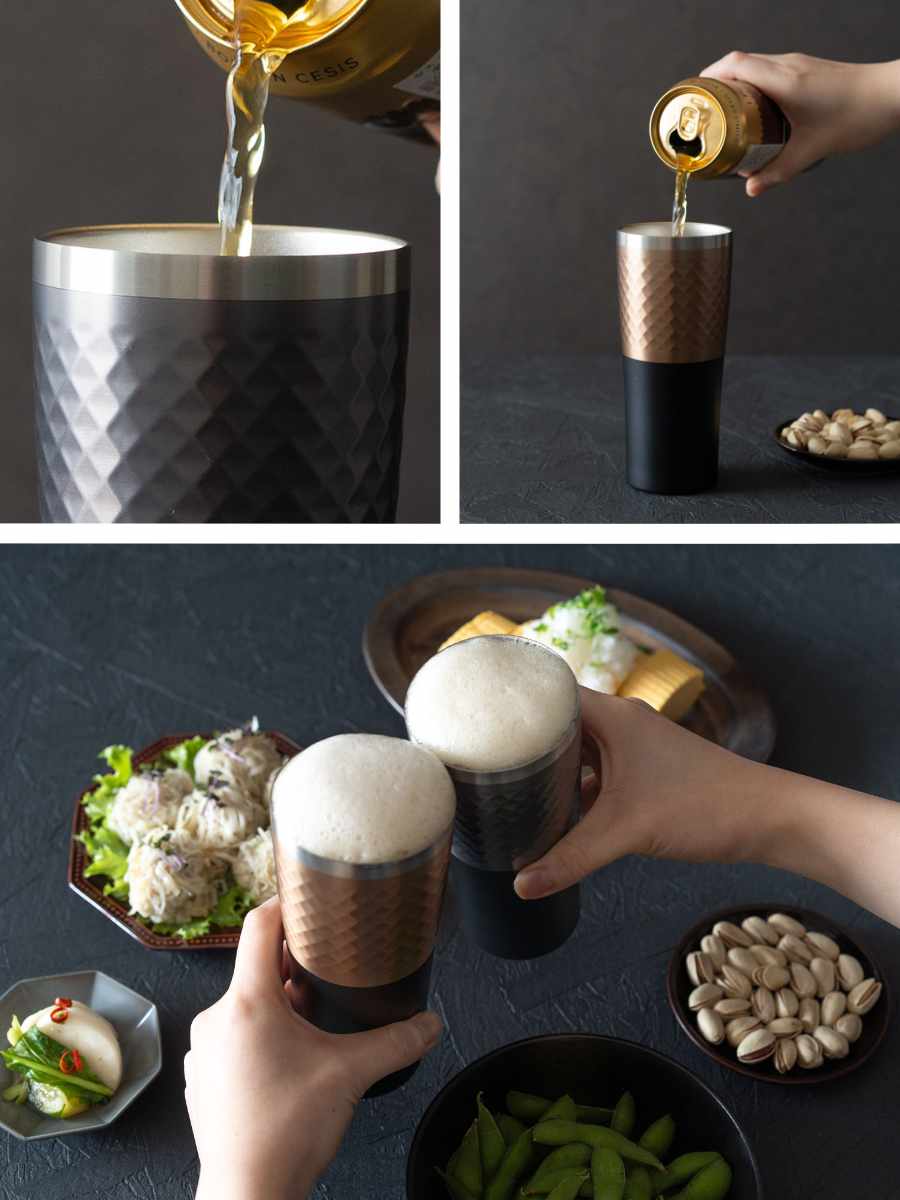 冷たさと温かさを逃がしにくい真空断熱構造なので飲み頃温度を長時間キープします。外側に熱を通さないので、おいしい温度をキープ・結露しにくい・外面が熱くならないタンブラーです。