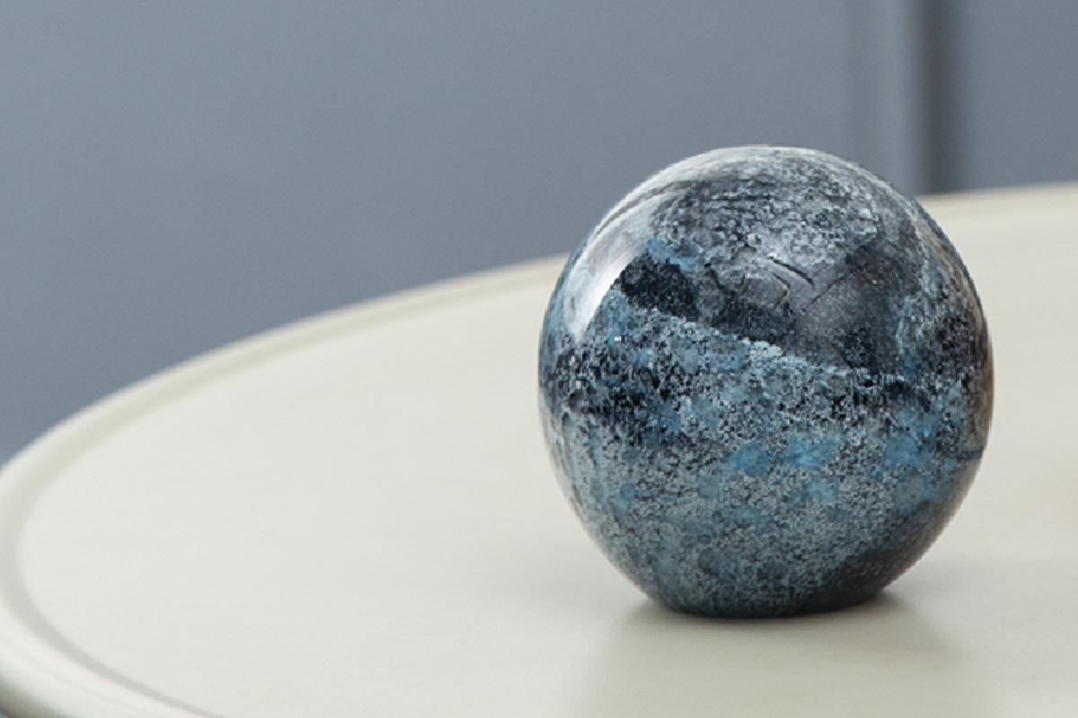 独特な質感が目を引くガラスオブジェです。光の反射によって様々な表情が楽しめます。毎日違った一面を見ることができるかもしれません。