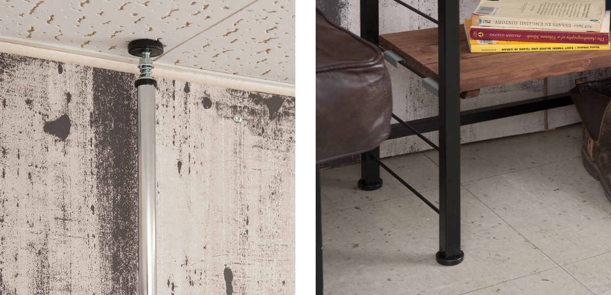 脚部はアジャスター付きで、床の傾きや凸凹によるガタツキを軽減することができます。