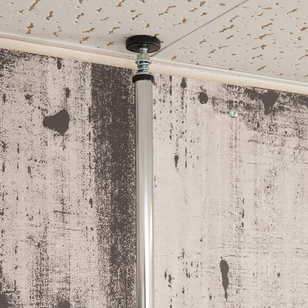 つまみを緩めてスライドバーを天井に伸ばして突っ張ります。付属のスパナでしっかりと天井に固定します。