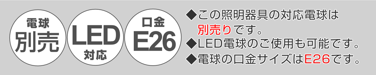 | 備考 | 白熱電球:E26(100V/20Wまで) LED電球:E26(100V/4.4Wまで) |
