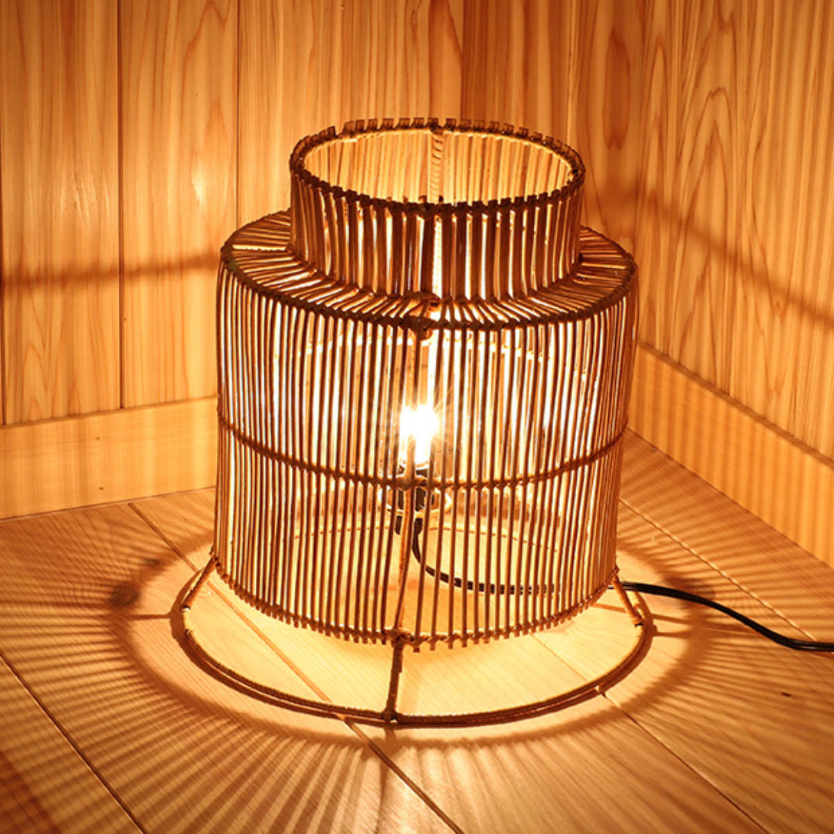 手仕事の温もりを感じる、ラタンで編まれたスタンドランプです。アジアンテイストのインテリアはもちろん、和モダンなお部屋やナチュラルな雰囲気にもマッチします。網目から漏れる柔らかな光で幻想的な影が映し出され、癒しの空間をお楽しみいただけます。