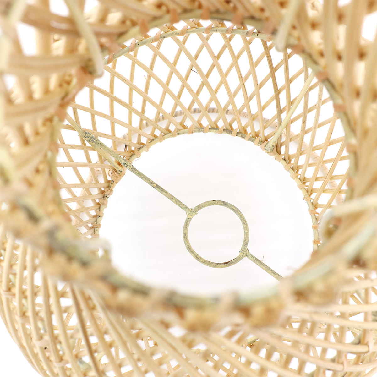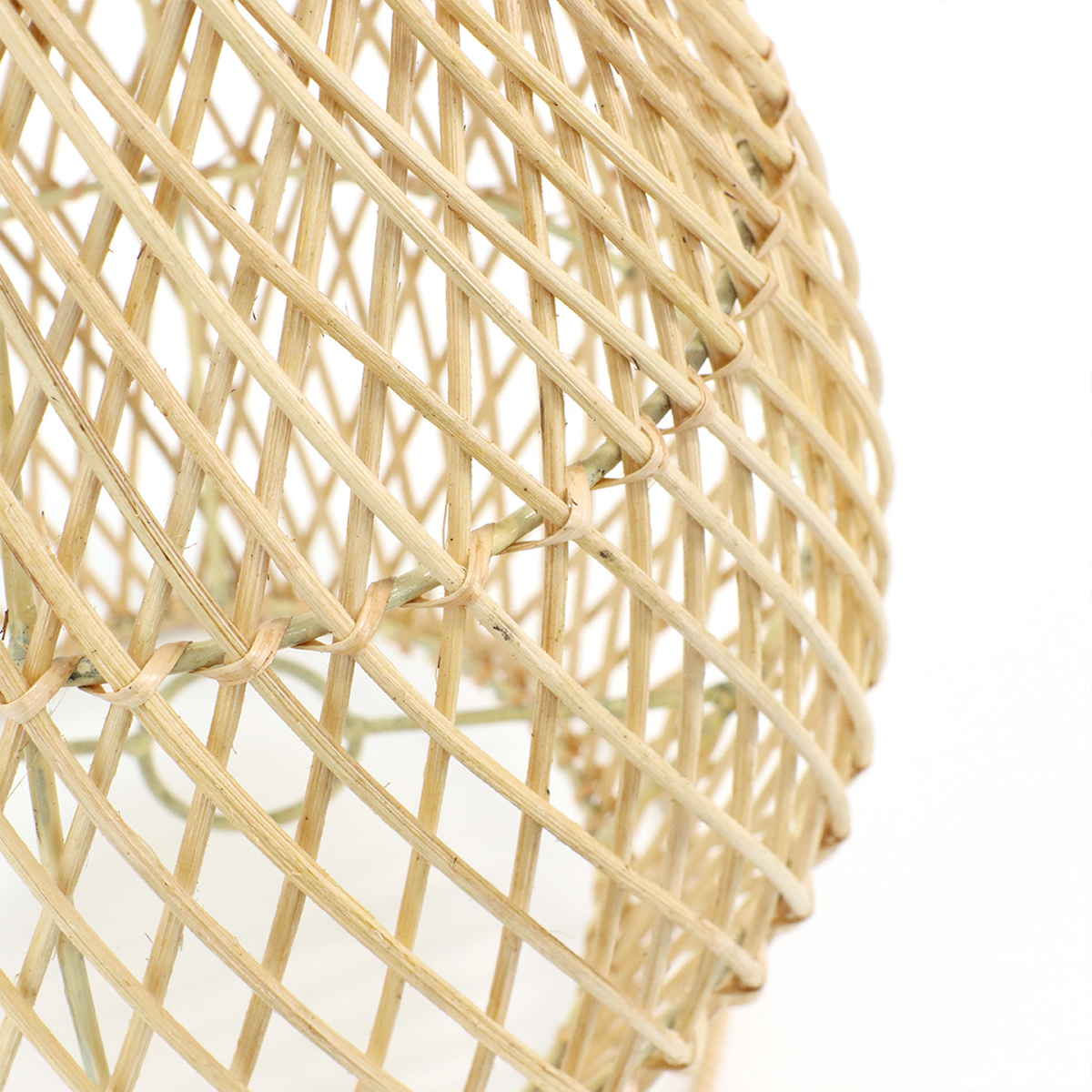 ツイストして編まれたデザインが美しく、ライトをつけていないときもオブジェとしてお楽しみいただけます。天然素材のラタンは自然な風合いがあり、観葉植物との相性も抜群です。