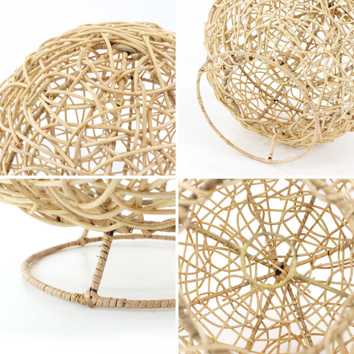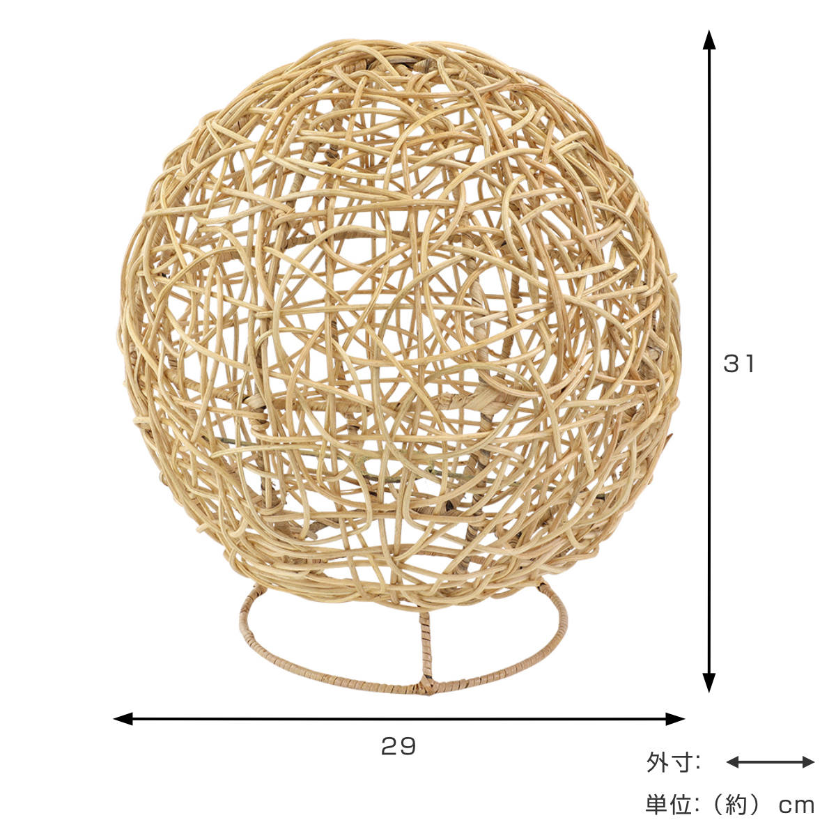 ころんとしたフォルムが可愛らしく、ライトをつけていないときもオブジェとしてお楽しみいただけます。天然素材のラタンは自然な風合いがあり、観葉植物との相性も抜群です。