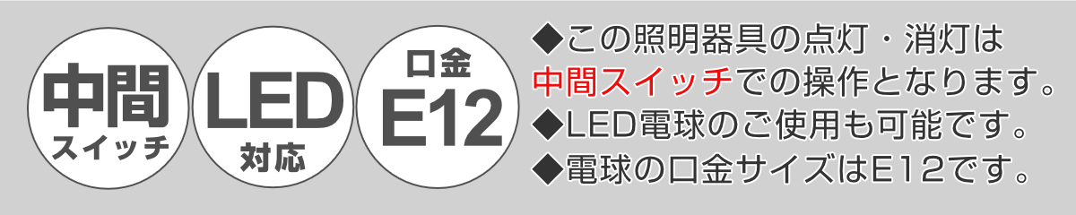 手元で電源のON、OFFができる中間スイッチ式です。ランプをセットして、スイッチをONにするだけの簡単操作です。