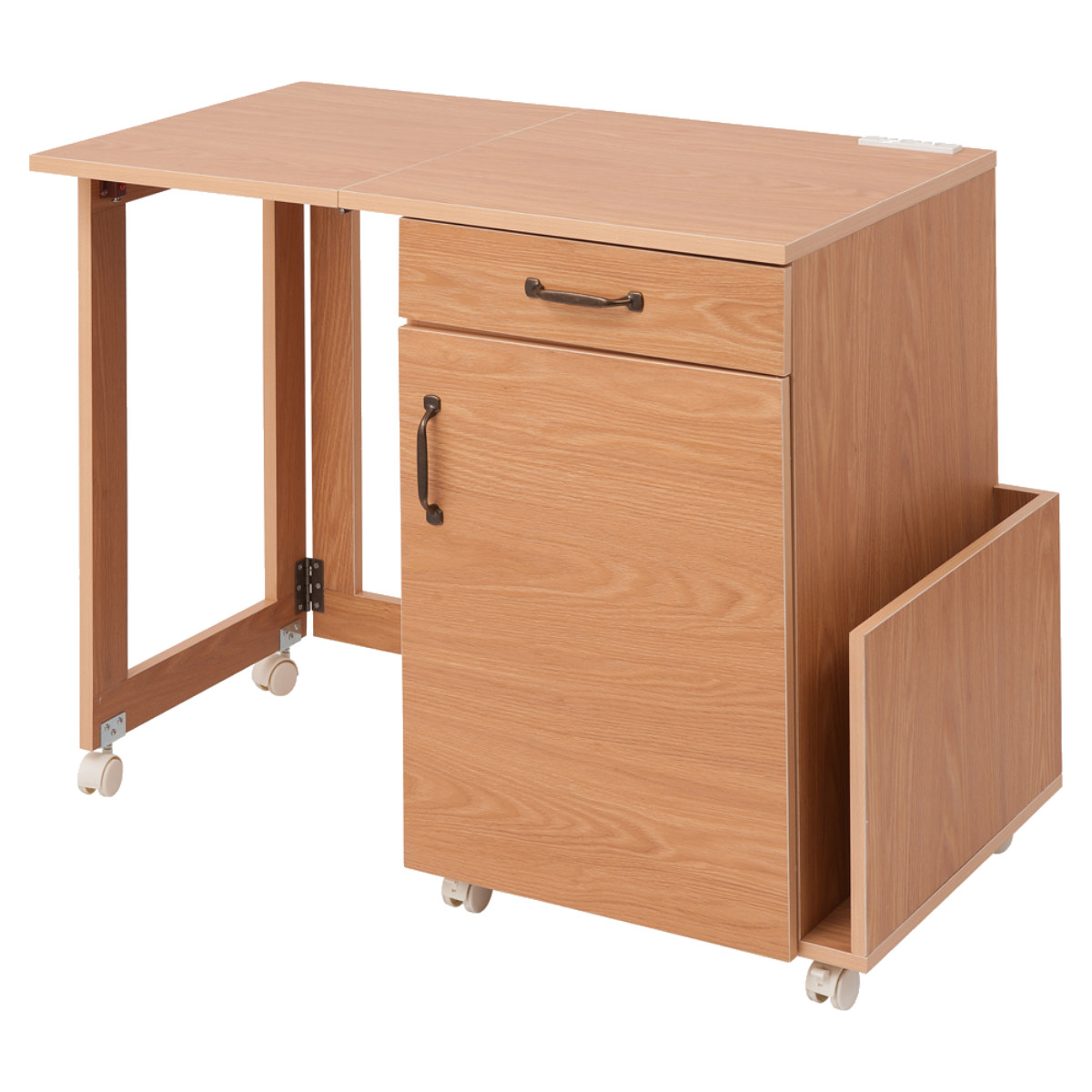 広げてワークスペース、折りたたんで収納。これ1台で家事がしやすくなるミシン台です。アイロン掛けやパソコン作業もでき、作業台を使わない時は収納棚としてお使いいただけます。