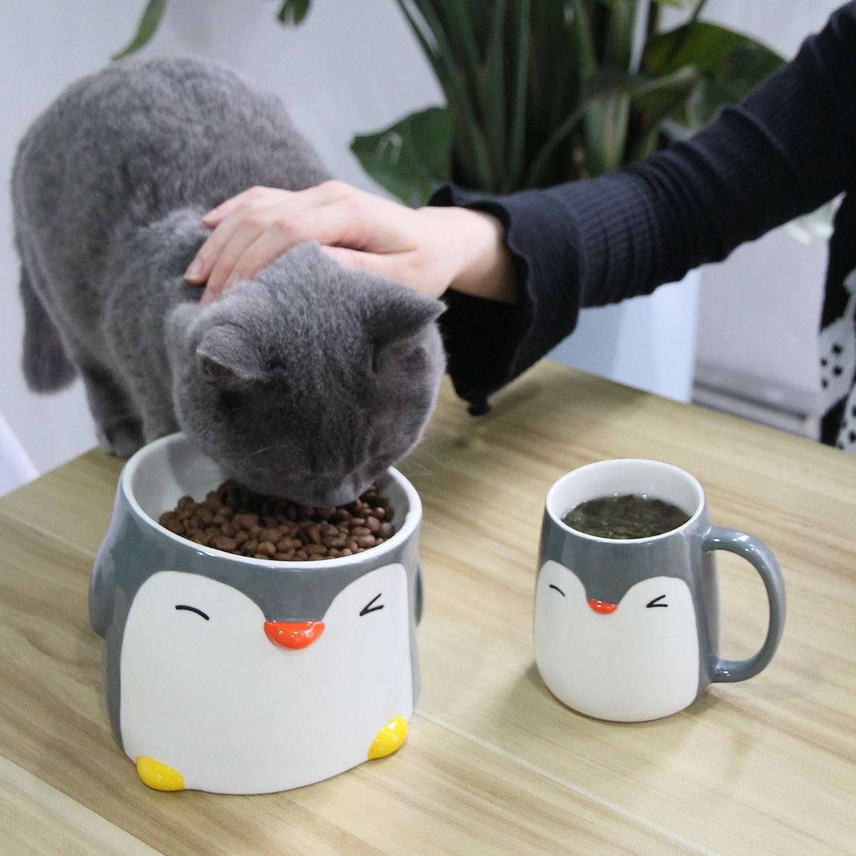 食事を食べやすくサポートしてくれる高さのフードボウルです。ペンギンのデザインがかわいく、食事をするわんちゃん、猫ちゃんの姿もかわいいです。