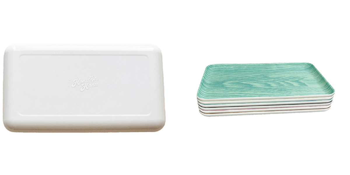 食事の配膳用としてはもちろん、ランチョンマットの代わりに使えるトレイです。軽くて扱いやすく、アクセサリーの受け皿などインテリアの一部としても使えます。