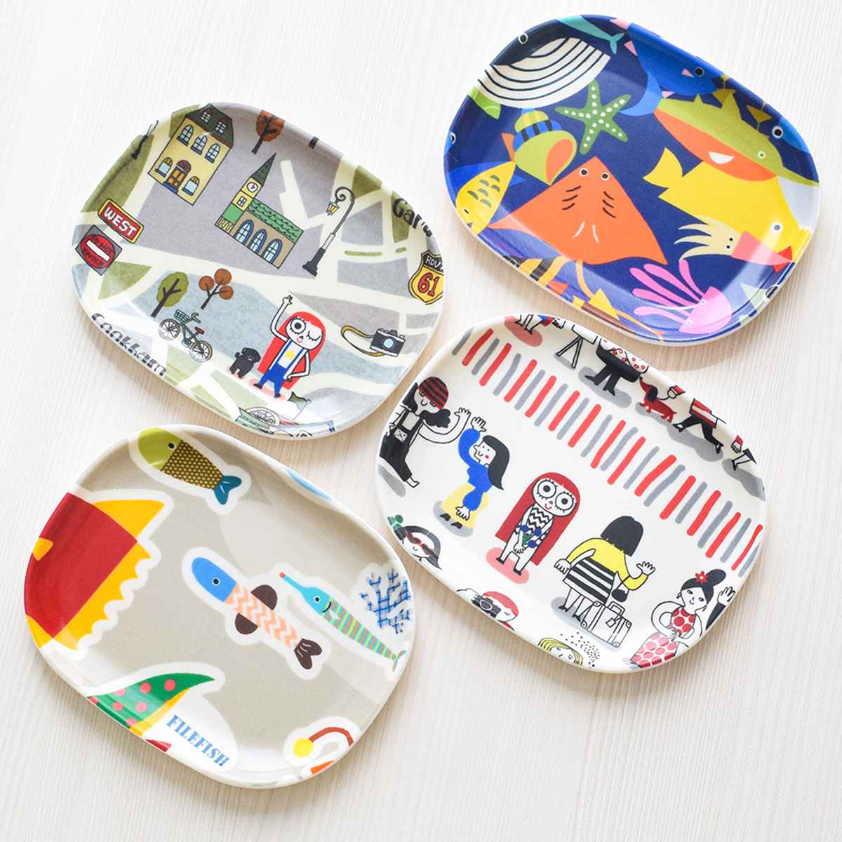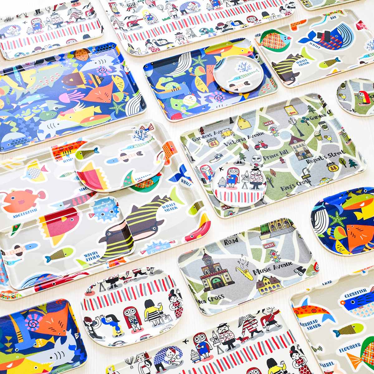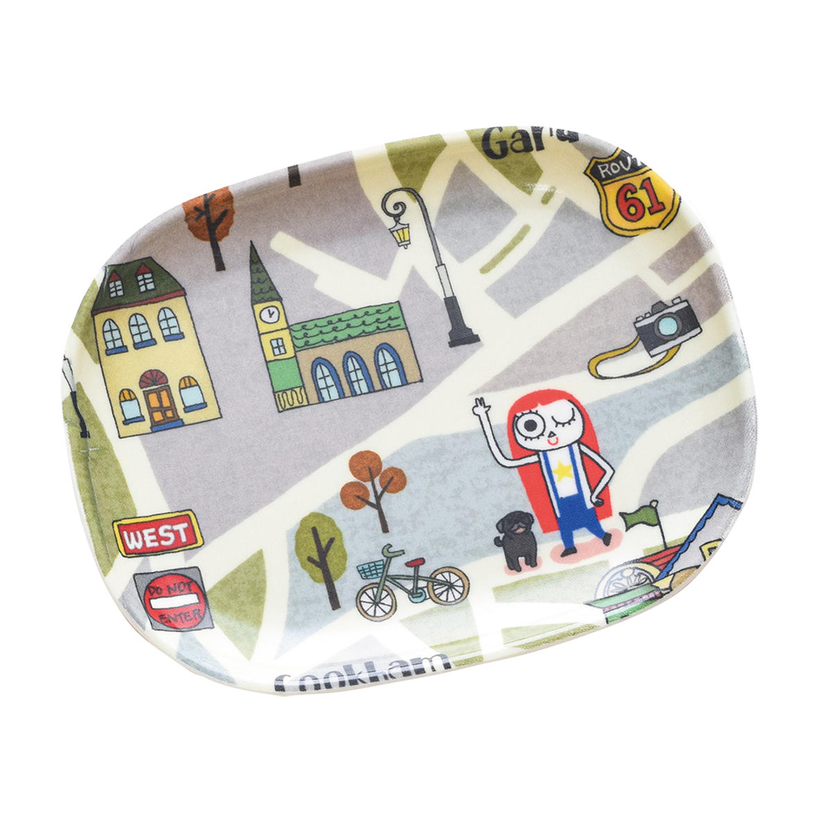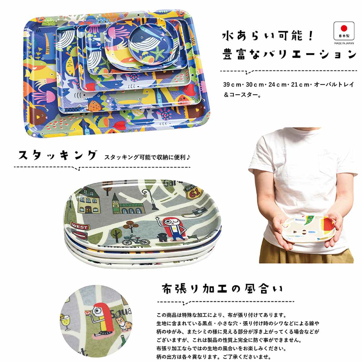 ●かわいいイラストの布貼り加工が施されたトレイです。