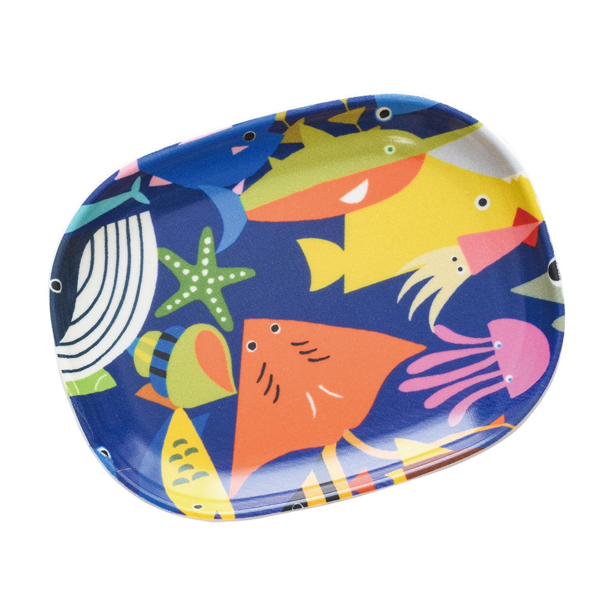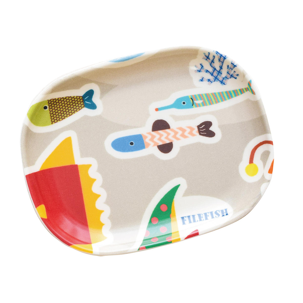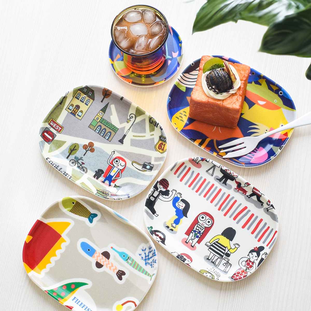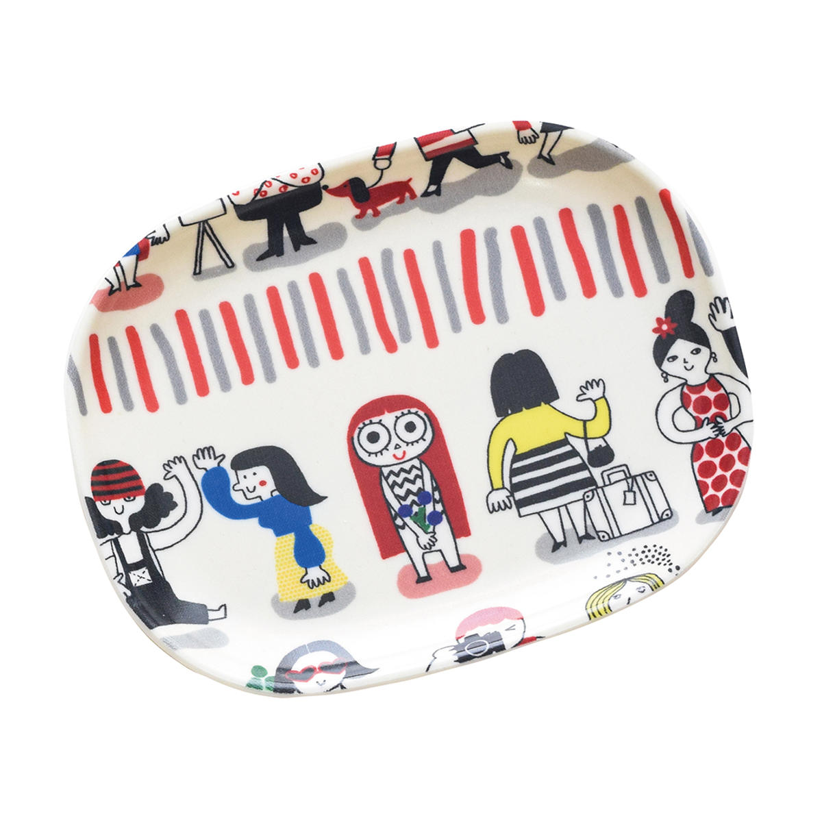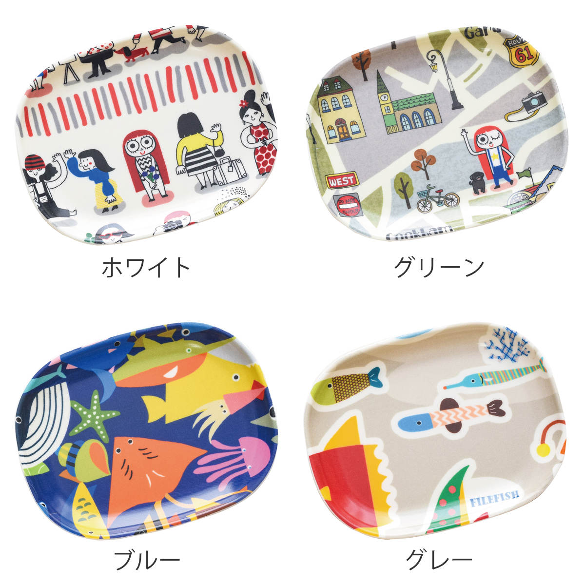 ●かわいいイラストの布貼り加工が施されたトレイです。