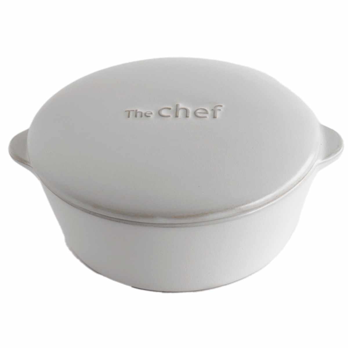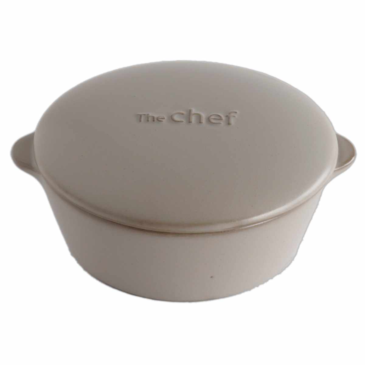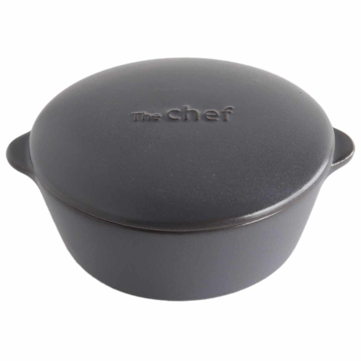 耐火黒土製のシンプルでスタイリッシュなデザインで食器としても使いやすいオールマイティな型です。フタにはロゴがついています。食べ残した際にはフタをして衛生的です。