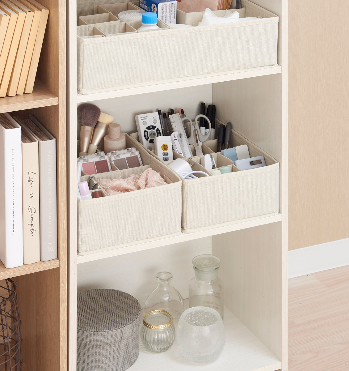 ●散らかりがちな文具やコスメなどの小物類もこの収納ボックスを使えばすっきりと整頓できます。