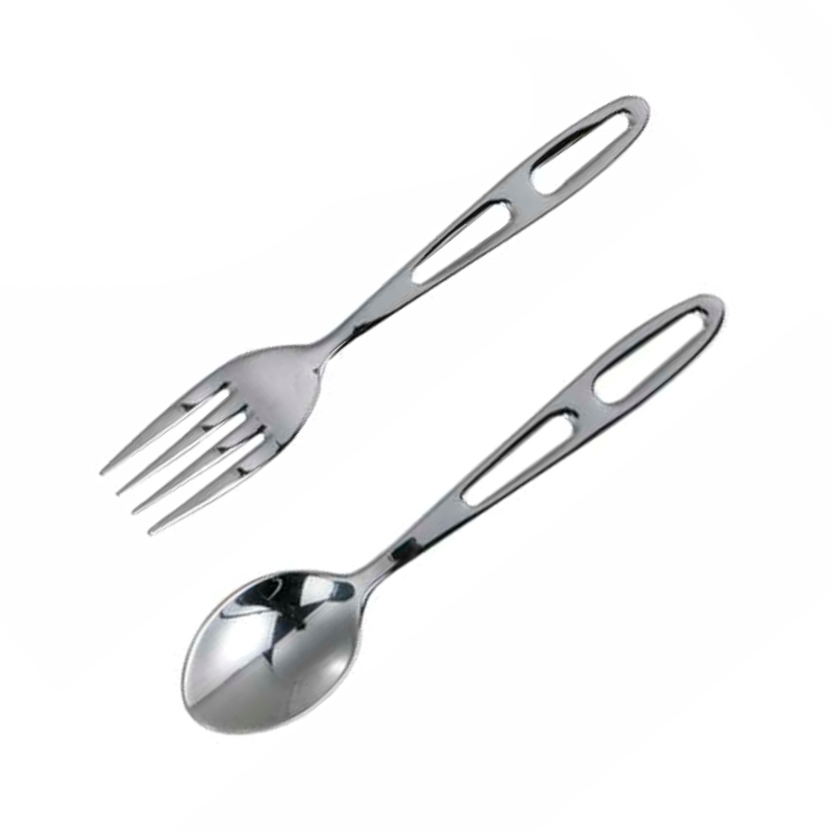 オールステンレスのカトラリーシリーズ。フラットなハンドルに施された空洞のデザインが、シンプルでありながら個性を感じるカトラリーです。普段使いにはもちろんですが、かさばらないので来客時のストック用にもおすすめです。