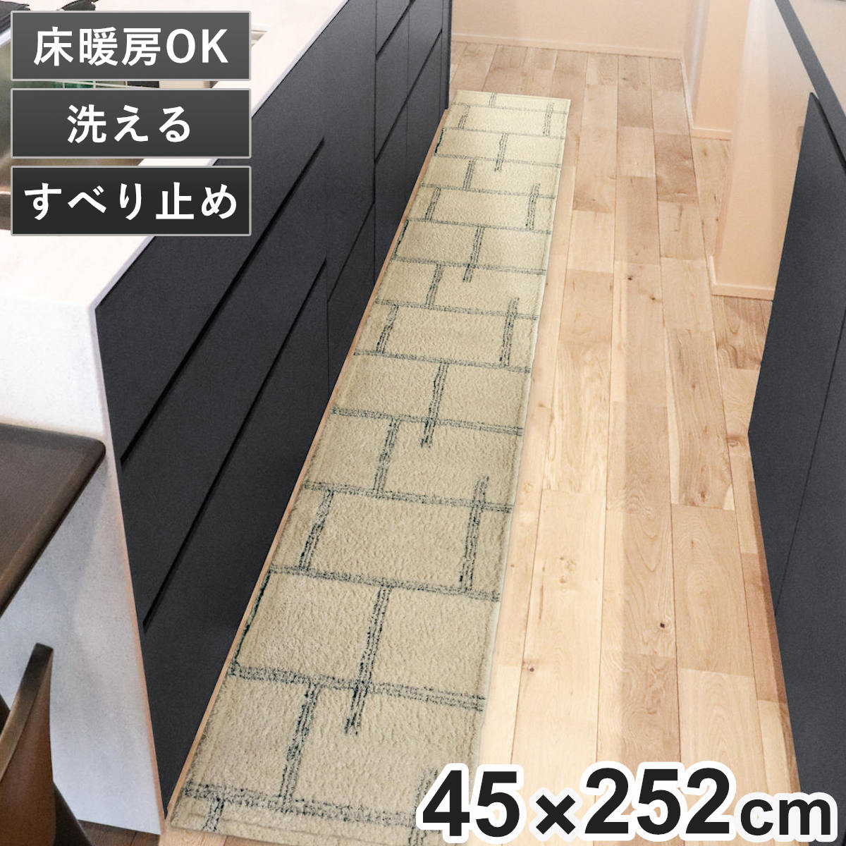 ●45×252cm・・・キッチンの足元全体に敷けるロングサイズ。