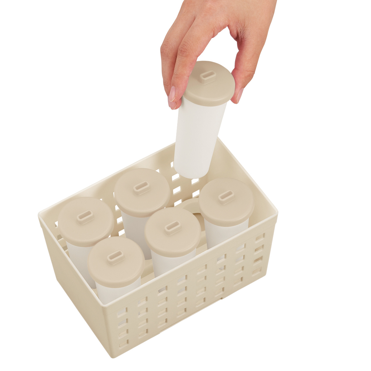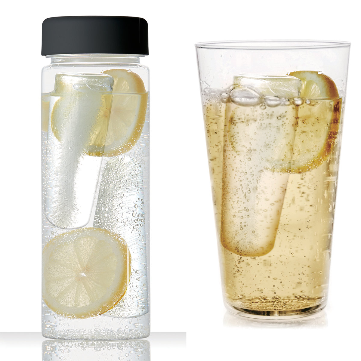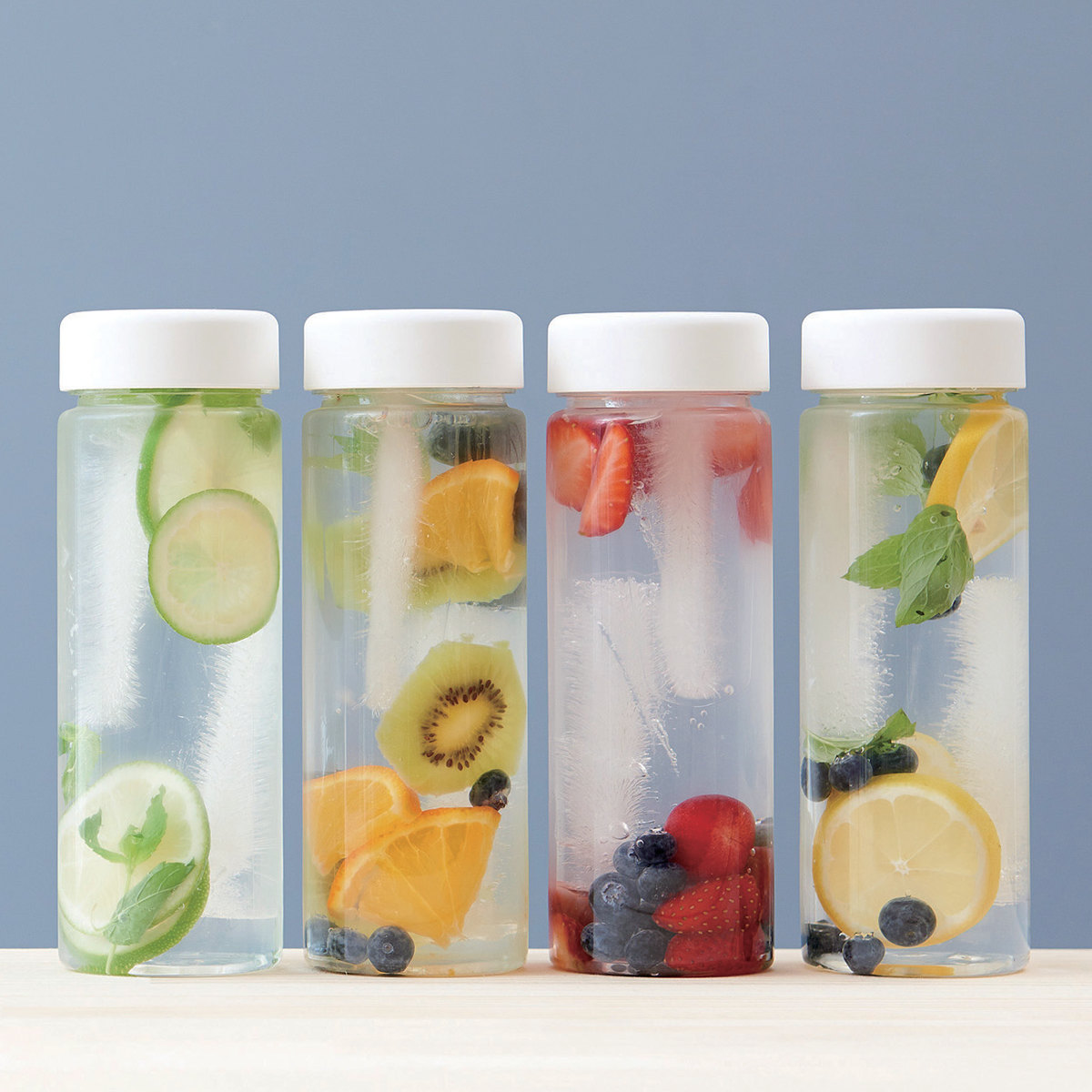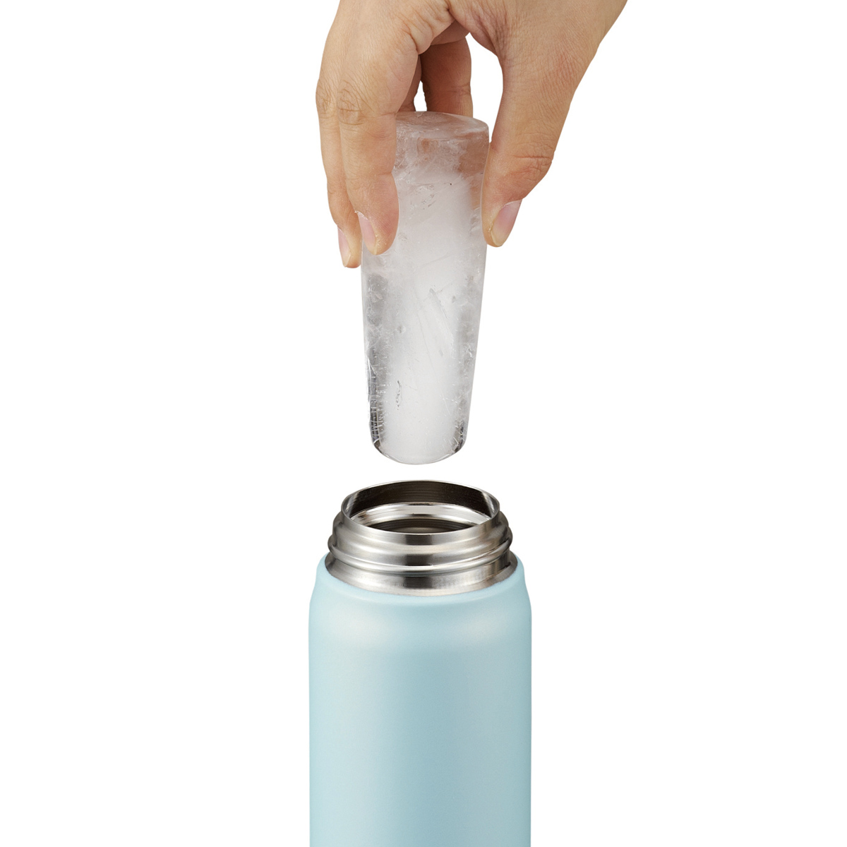 水筒にピッタリ入る円柱状(直径約4cm、高さ約10cm)の氷が作れる製氷器です。円柱状にすると通常の氷よりも溶けにくいので、冷たさを長く味わえるのが嬉しいポイントです。