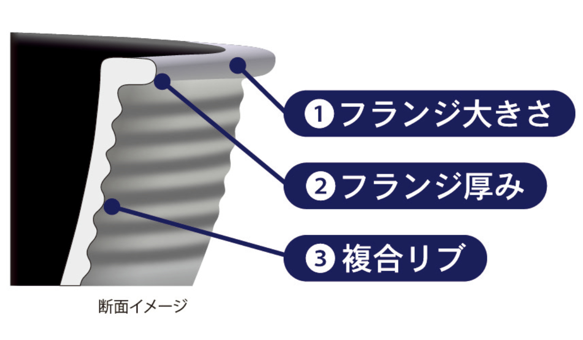 しっかりと安定し、料理のときの使い勝手を損なわない。そんな取っ手を、長い時間をかけてこだわりぬき開発しました。トライデント構造という鋳造製だからこそできる計算された本体の厚みと複合リブ構造でハンドルがしっかりと装着されます。