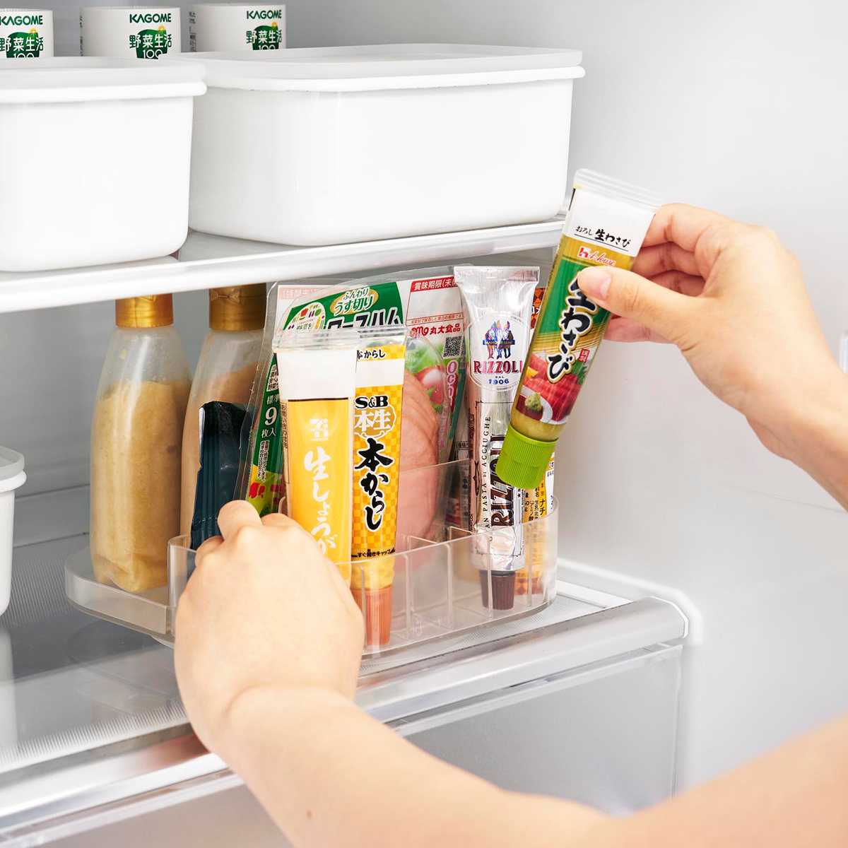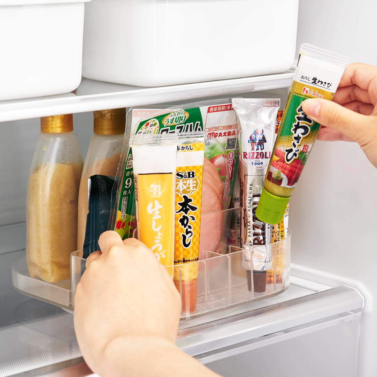 チューブや瓶の調味料をまとめてすっきり整頓